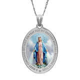 "I've purchased two Miraculous Medals from you at different times. Both times I've been highly satisfied. They came when expected and there were no hidden costs. Actually look so much better than pictures on site. No photo does jewelry any justice. The recent one I got was in sterling silver. I bought it for a friend for Mothers Day as she keeps admiring the one I always wear. Won't she be surprised. Thank you for your meticulous work in creating this fine jewelry."