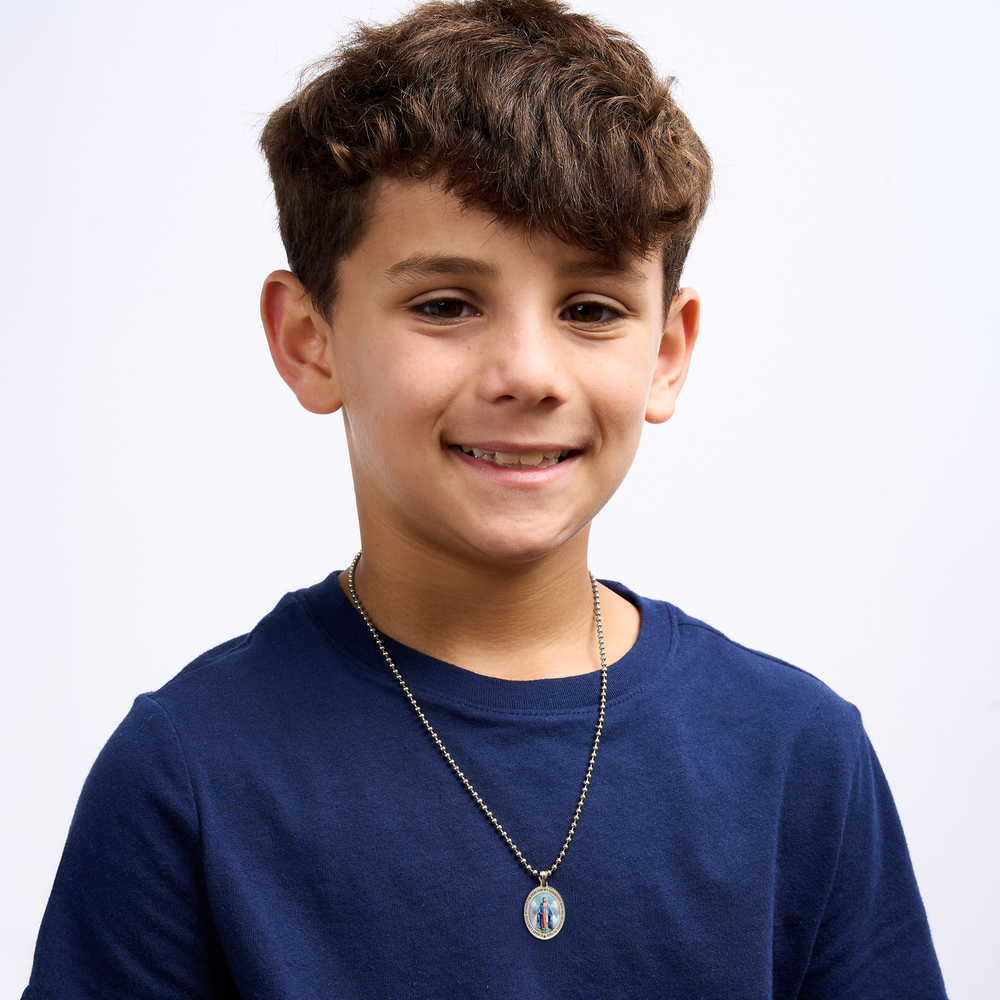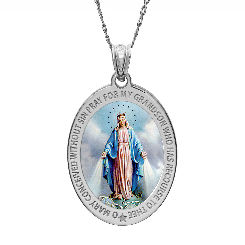 Pray For My Grandson Miraculous Medal Religious Color Oval Pendant