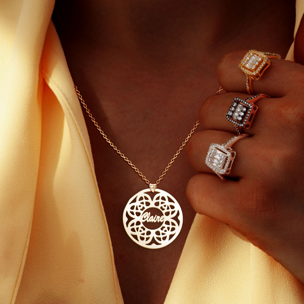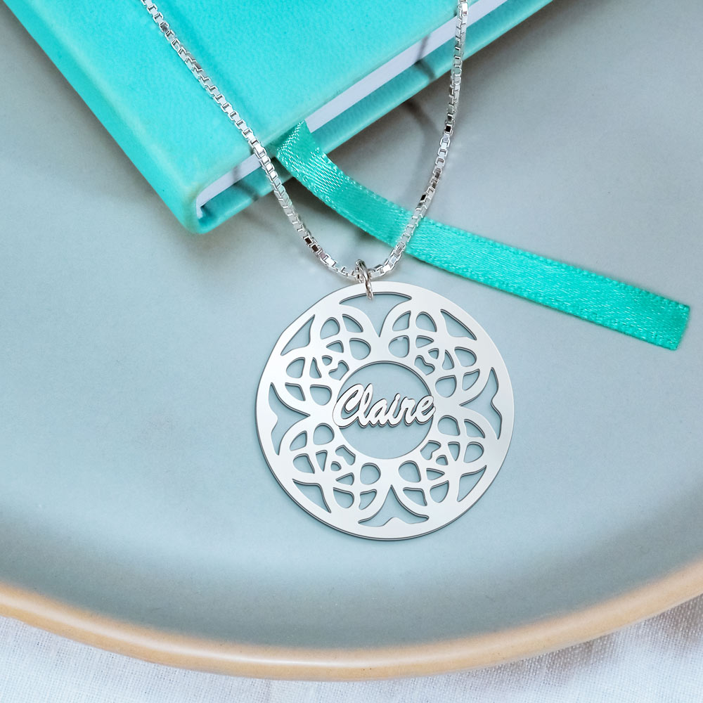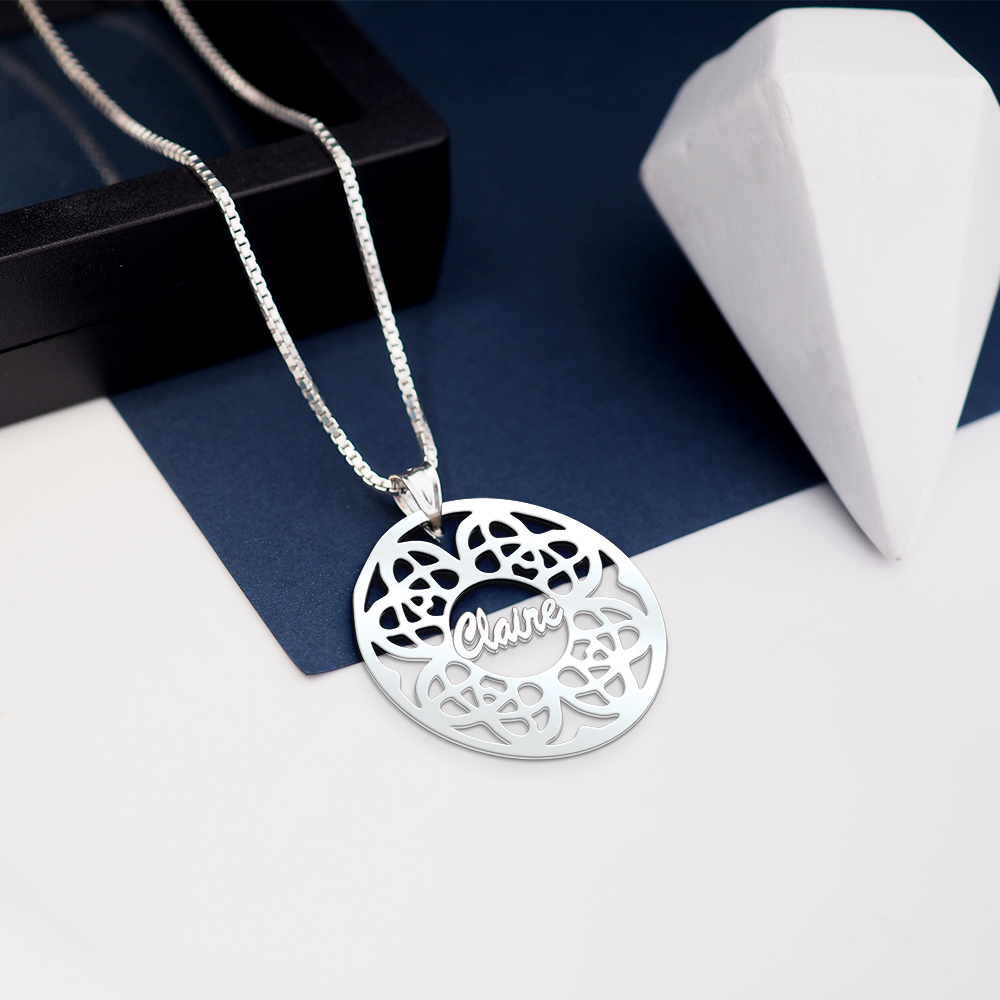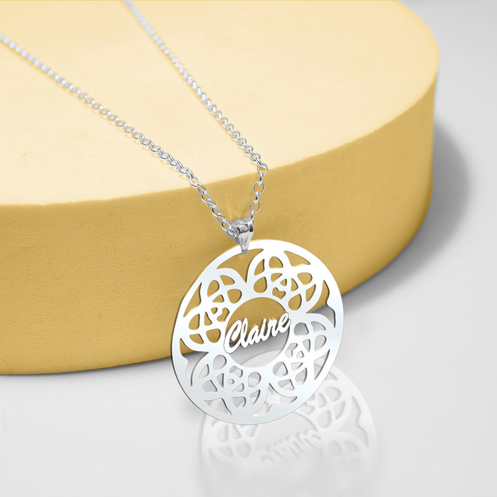 Make a statement with the Modern Script Floral Name Pendant!