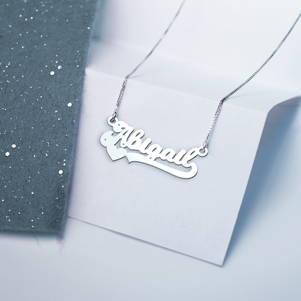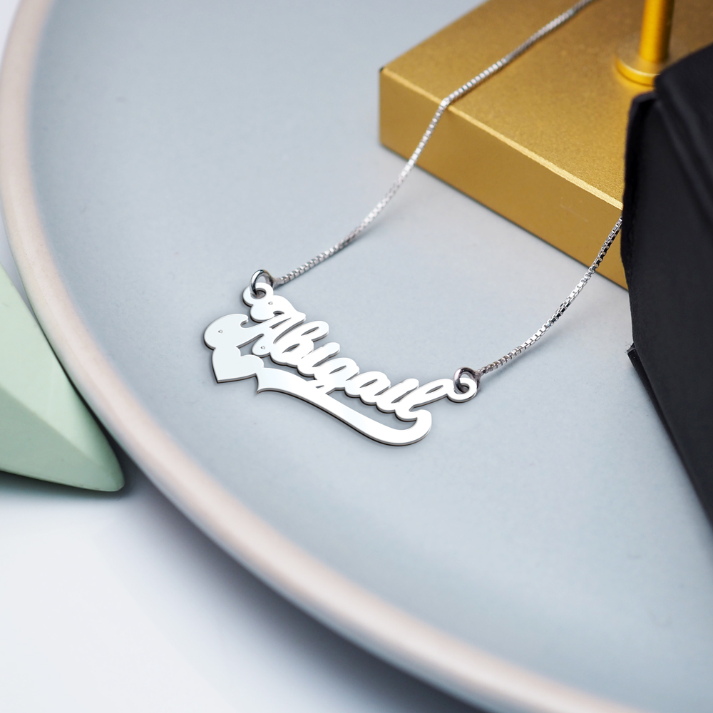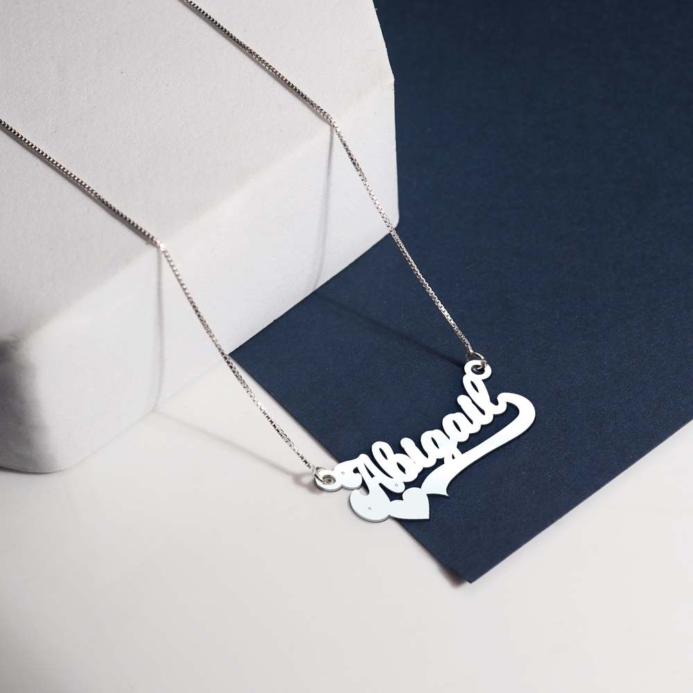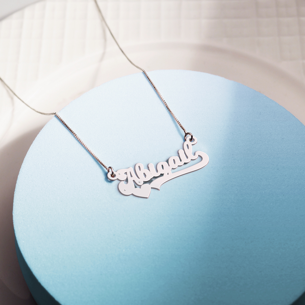 Treat yourself to the timeless beauty of the Modern Script Heart Name Necklace!