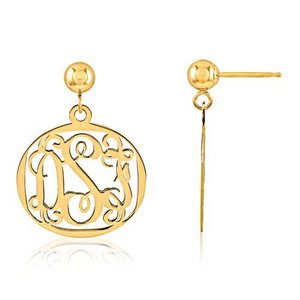 Monogram Vine Script Round Post Dangle Earrings