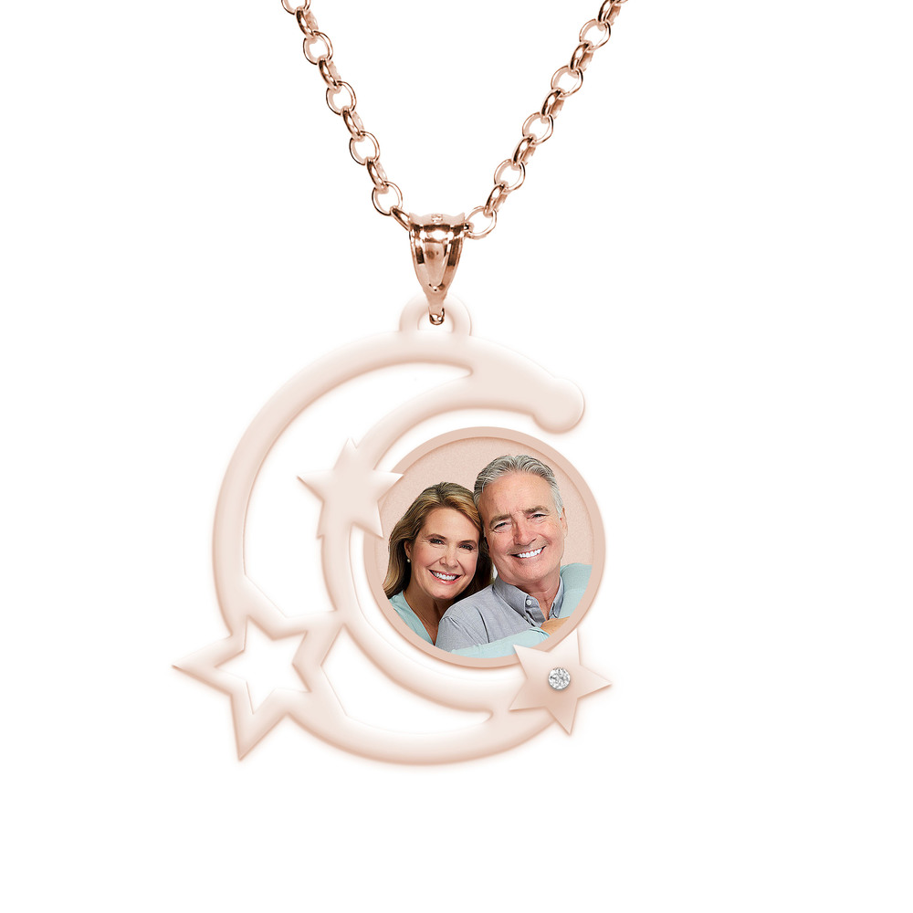 Moon Silhouette w/ Stars Photo Pendant And 1 Cubic Zirconia