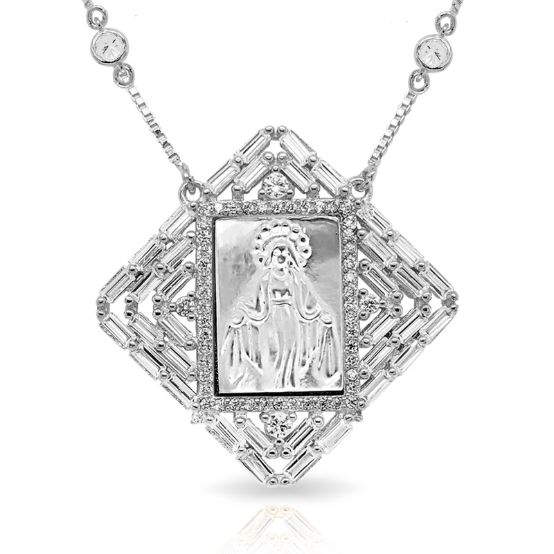 Mother of Pearl Miraculous Square Medal with CZ Ornate Border
