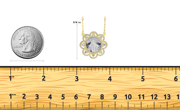 Medal with the Height of 1 Inch is Comparable to the Size of a US Quarter The Miraculous Medal designs were originated by Saint Catherine Labour following her reported vision of the Blessed Virgin Mary. Catholics believe that wearing the medal with faith and devotion can bring special graces through the intercession of Mary at the hour of death.
