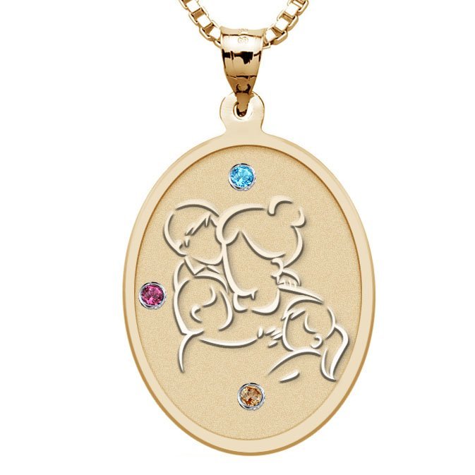 Mother with Son and 2 Daughters Oval Pendant with Birthstones