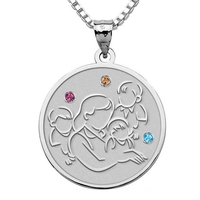 Mother with Three Sons - Round Pendant with Birthstones