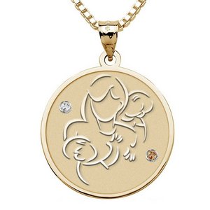 Mother with Two Sons - Round Pendant with Birthstones