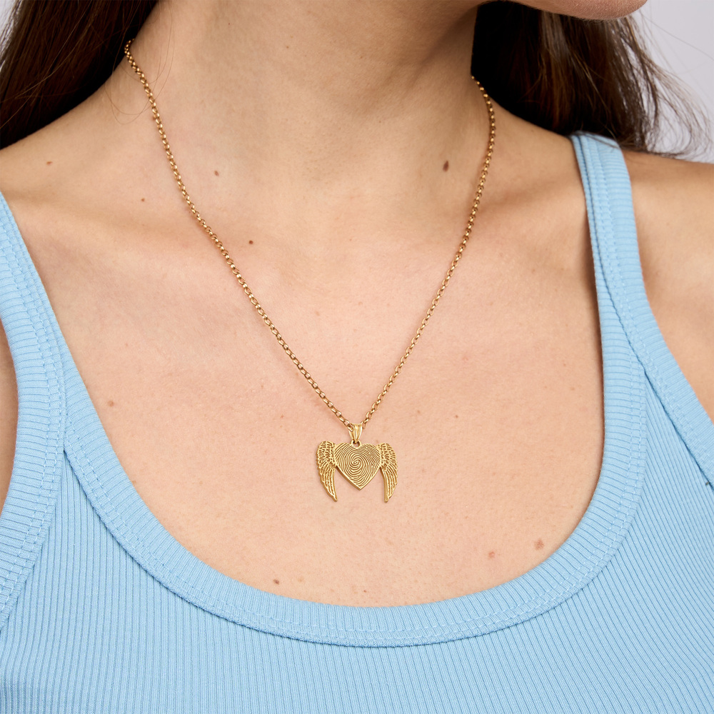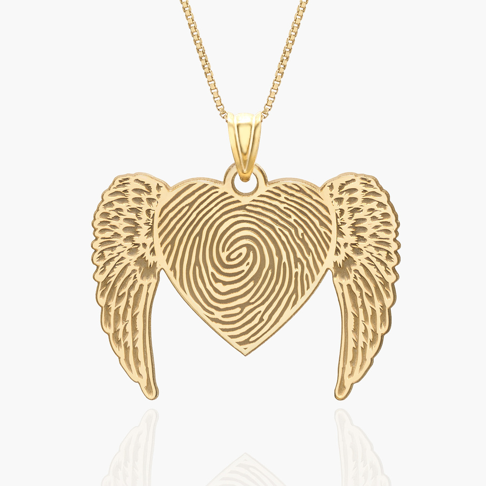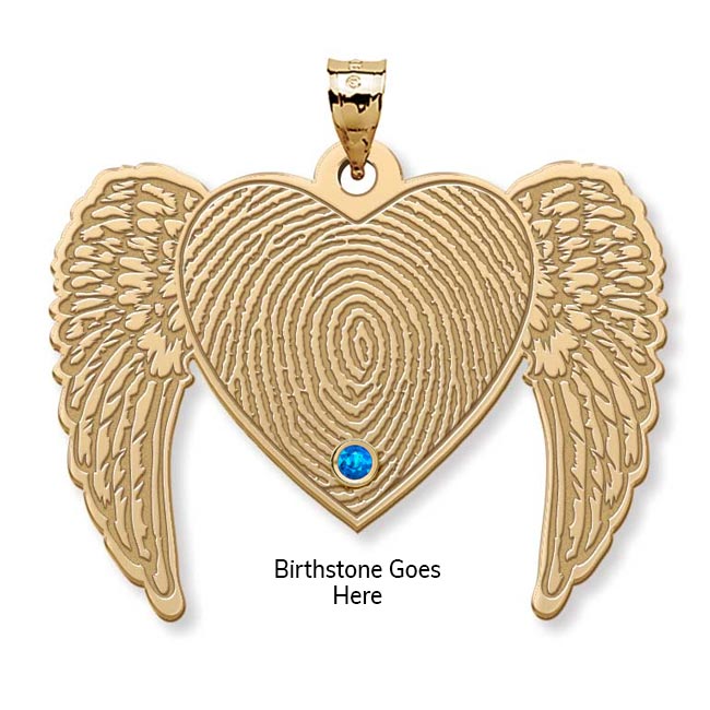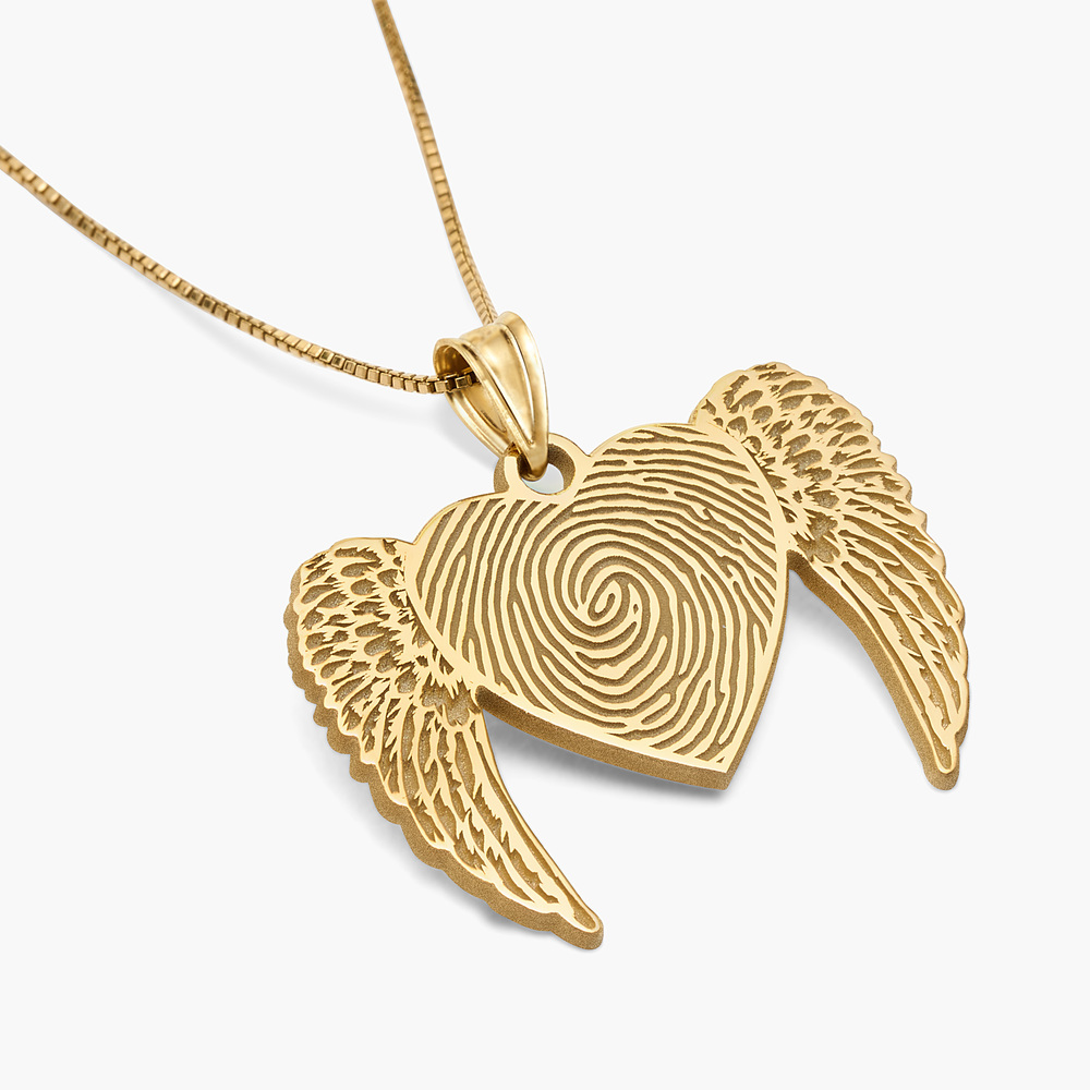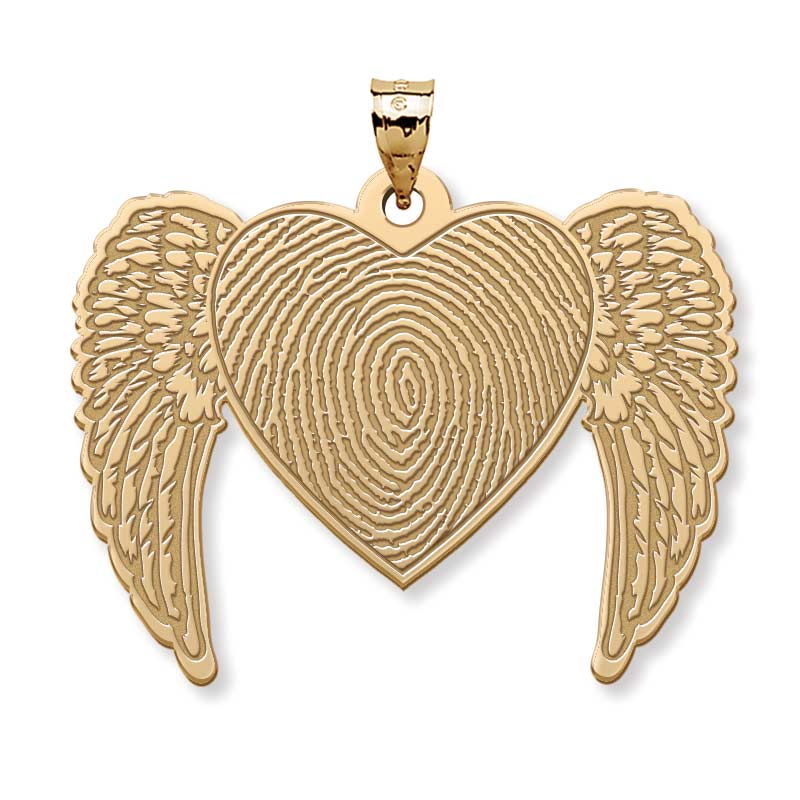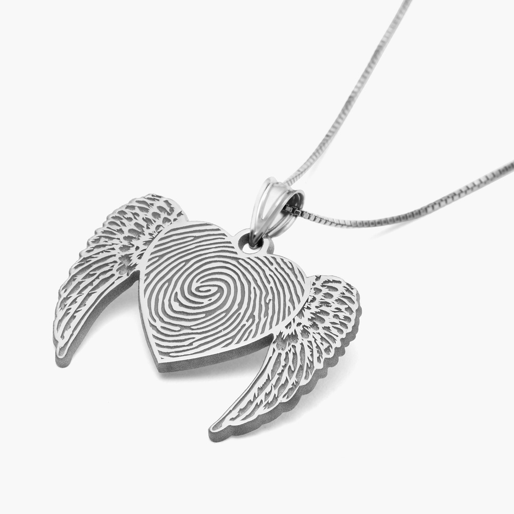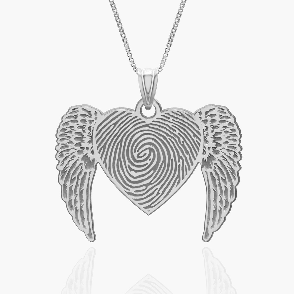 Custom Fingerprint Angel Wing Heart Charm or Pendant
