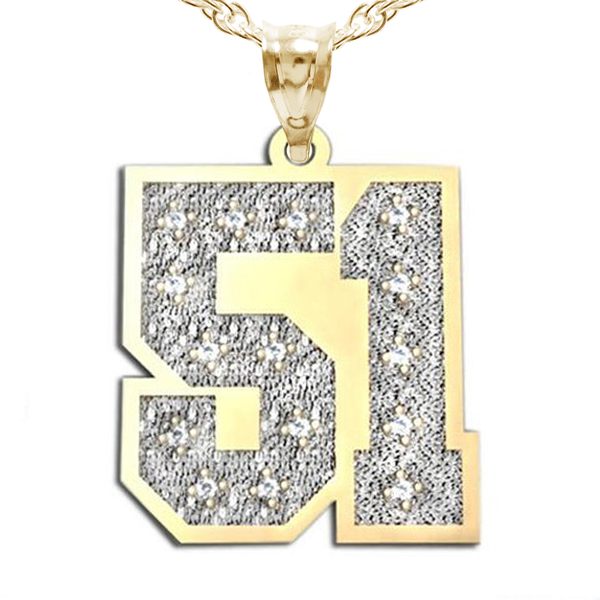 Jersey Hammered Two Digit Number Charm or Pendant w/ 20 Diamonds