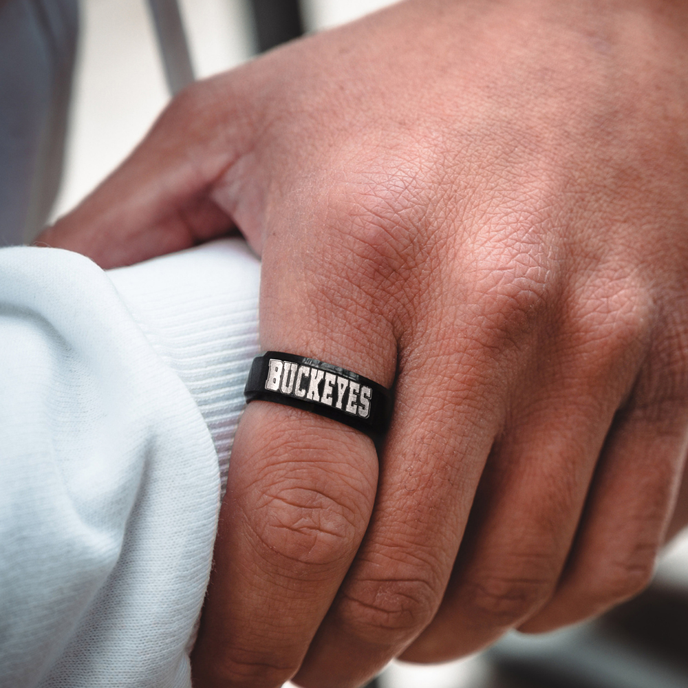 Show your team pride with this sleek and stylish Ohio State Black Stainless Steel Ring. Crafted from durable, high-quality black stainless steel, this ring features a bold, modern design that combines strength and sophistication. The polished finish offers a subtle shine while the engraved Ohio State logo adds a touch of school spirit. Perfect for Ohio State fans and alumni, this ring is a great way to display your loyalty in a fashionable and timeless way.