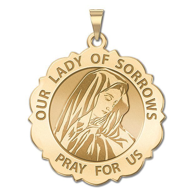 Our Lady of Sorrows Scalloped Round Religious Medal "EXCLUSIVE"