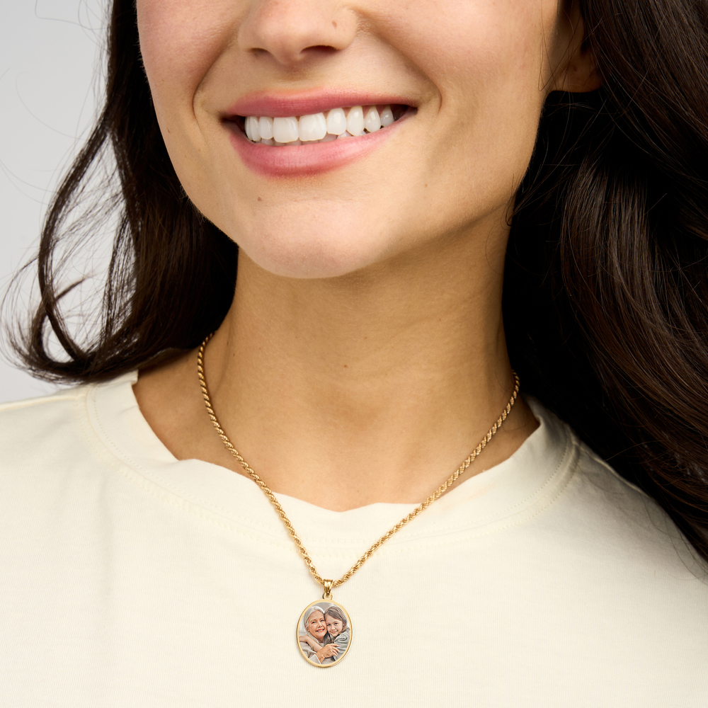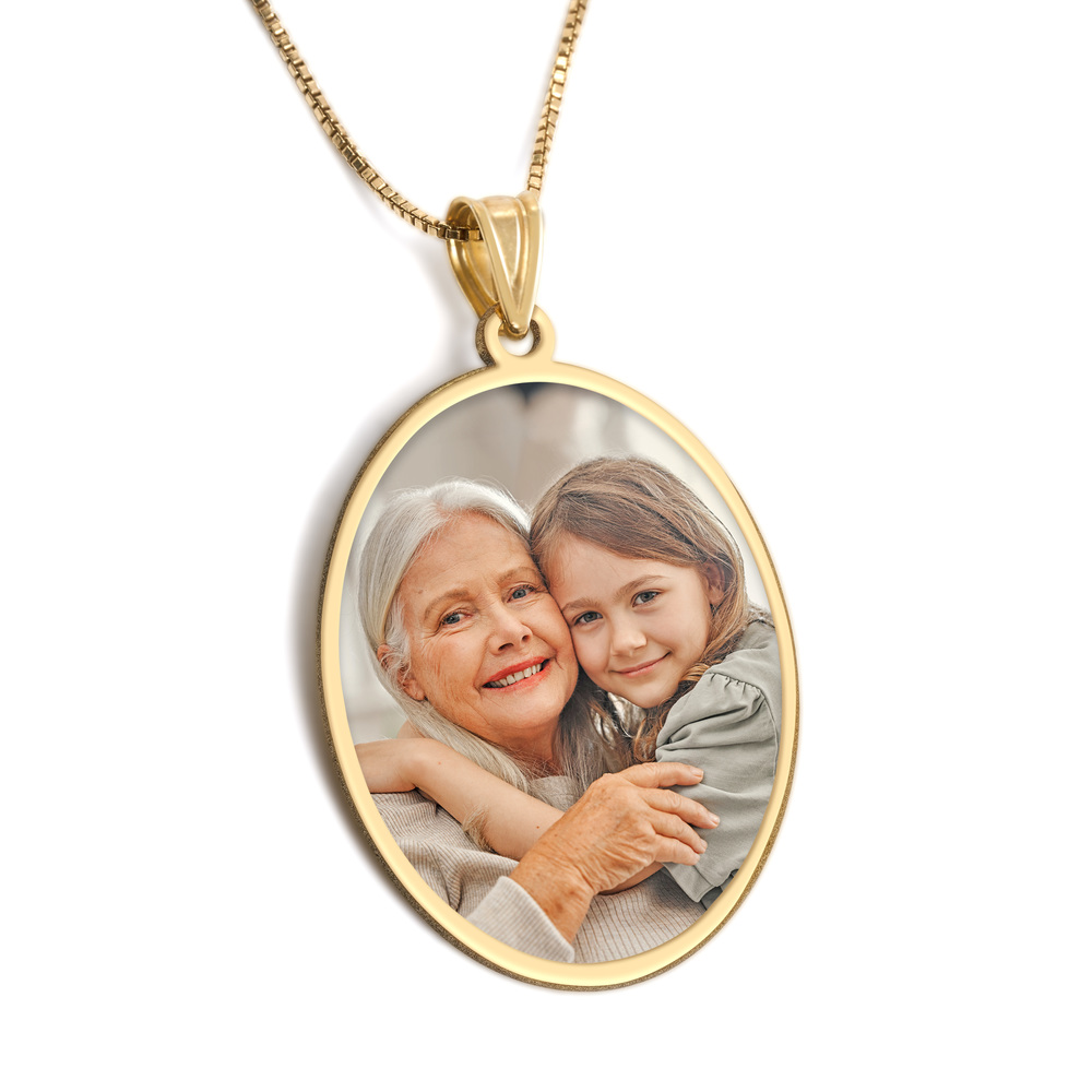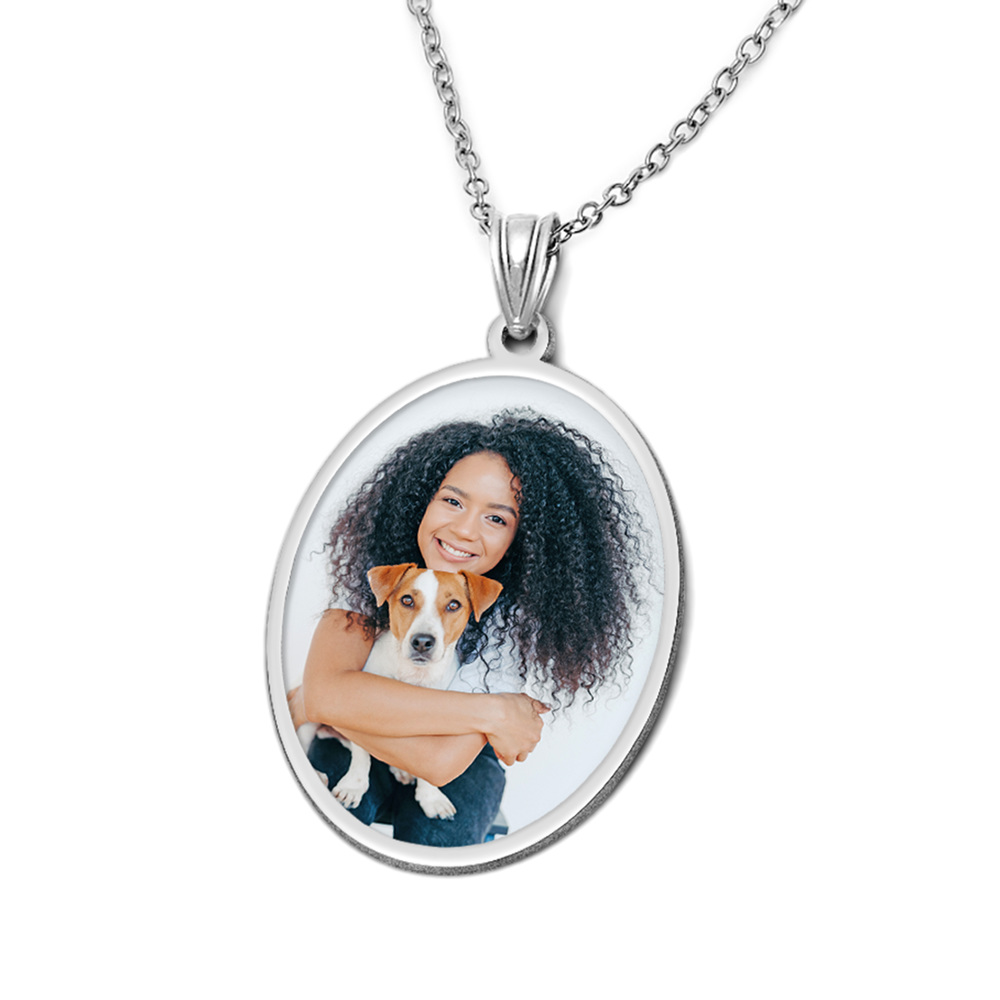 Oval w/ Bezel Frame Photo Engraved Pendant
