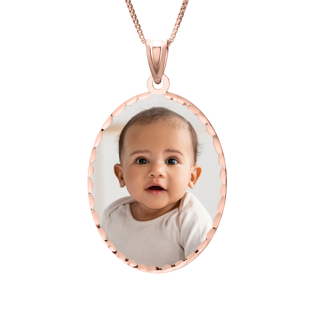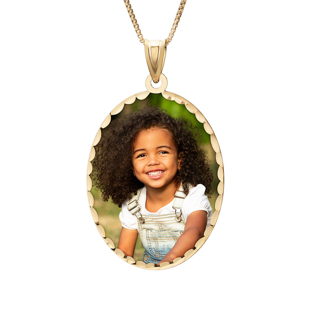 Oval w/ Diamond Cut Edge Photo Engraved Pendant