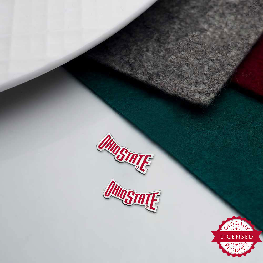This pair of Ohio State earrings is available in Stainless Steel, Solid .925 Sterling Silver, Black Sterling