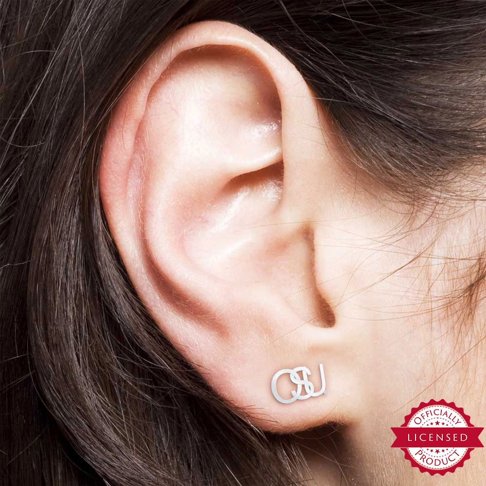 This pair of Ohio State earrings is available in Stainless Steel, Solid .925 Sterling Silver, Black Sterling