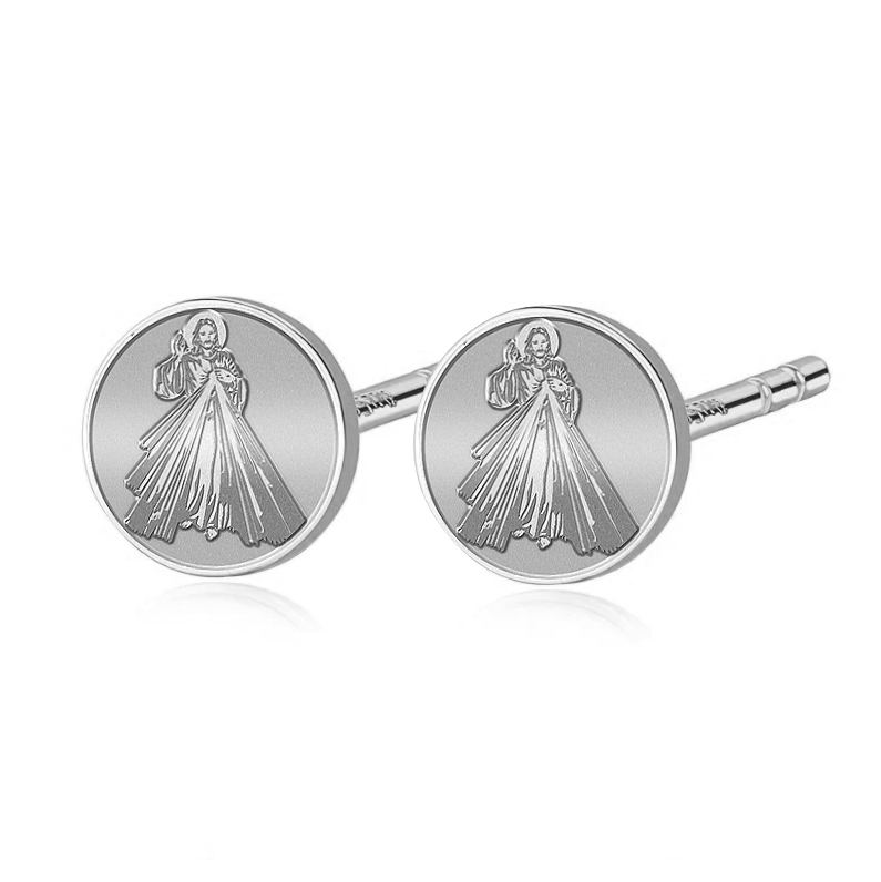 Pair of Divine Mercy Jesus Stud Earrings