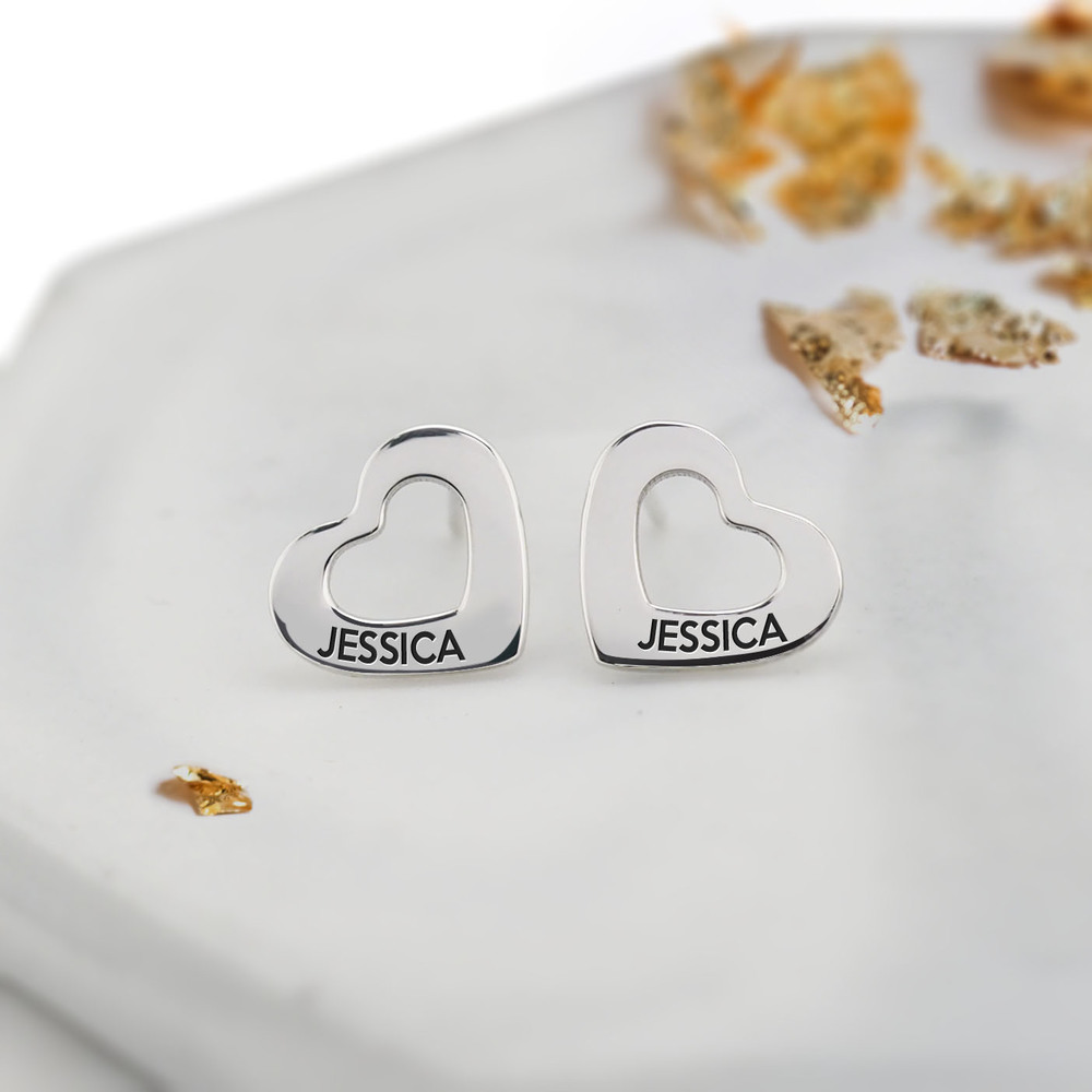 This pair of high polished script earrings is available in Solid .925 Sterling Silver,