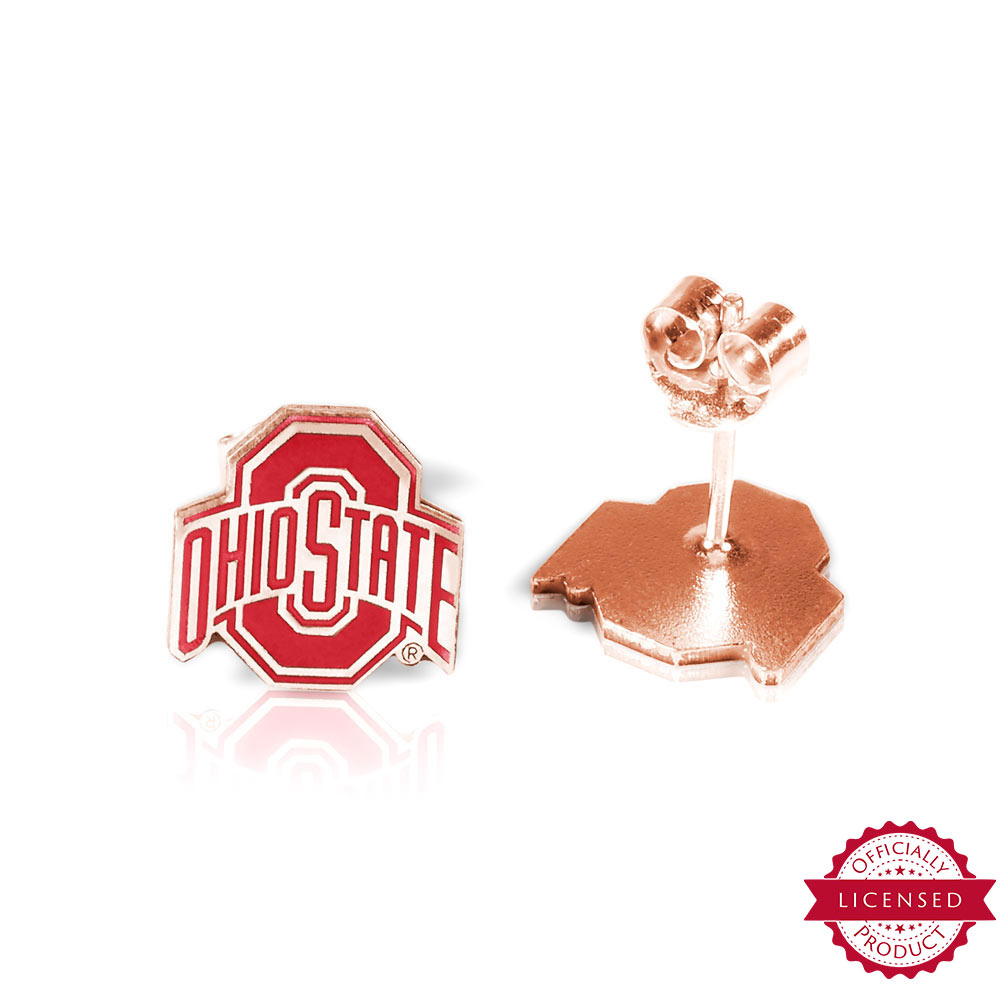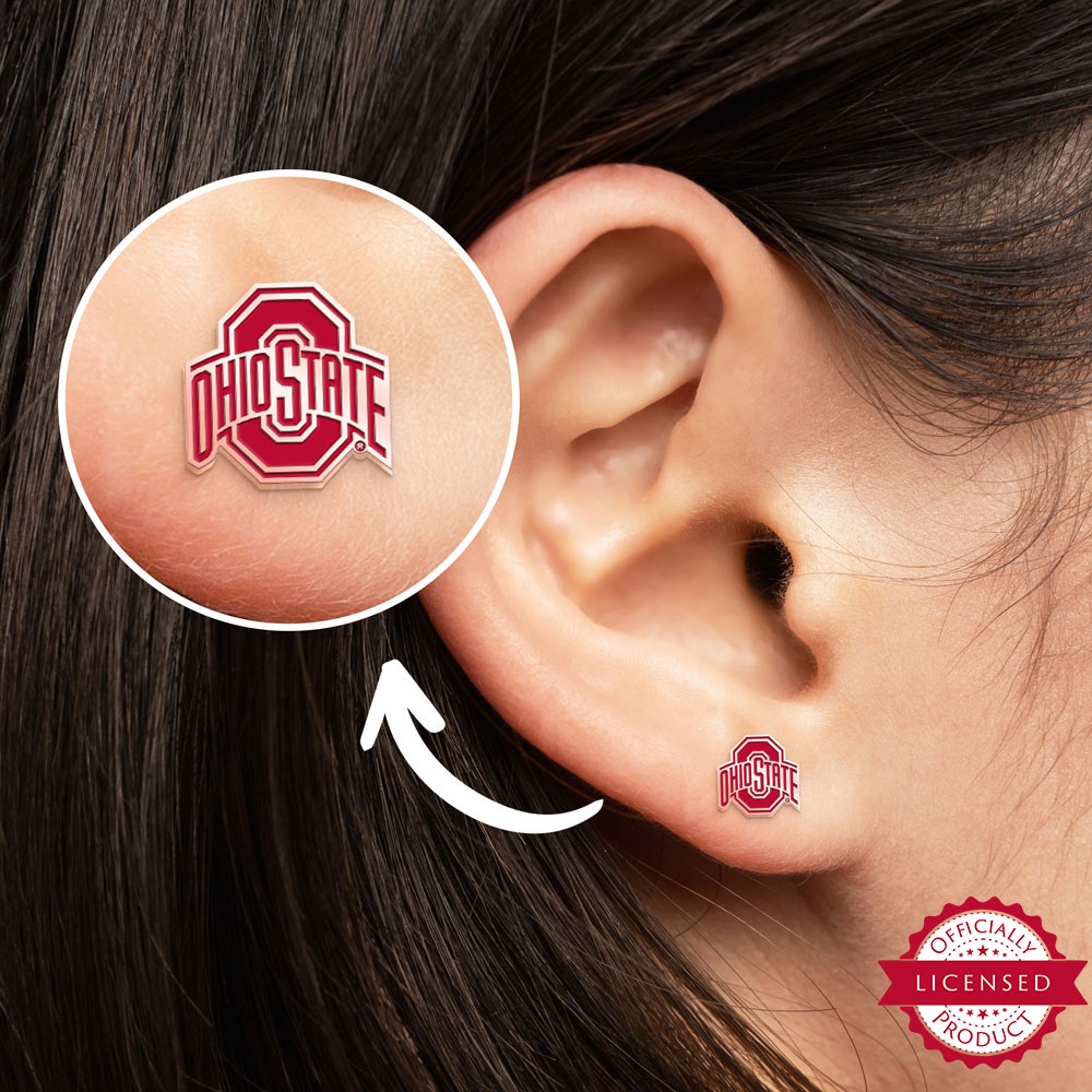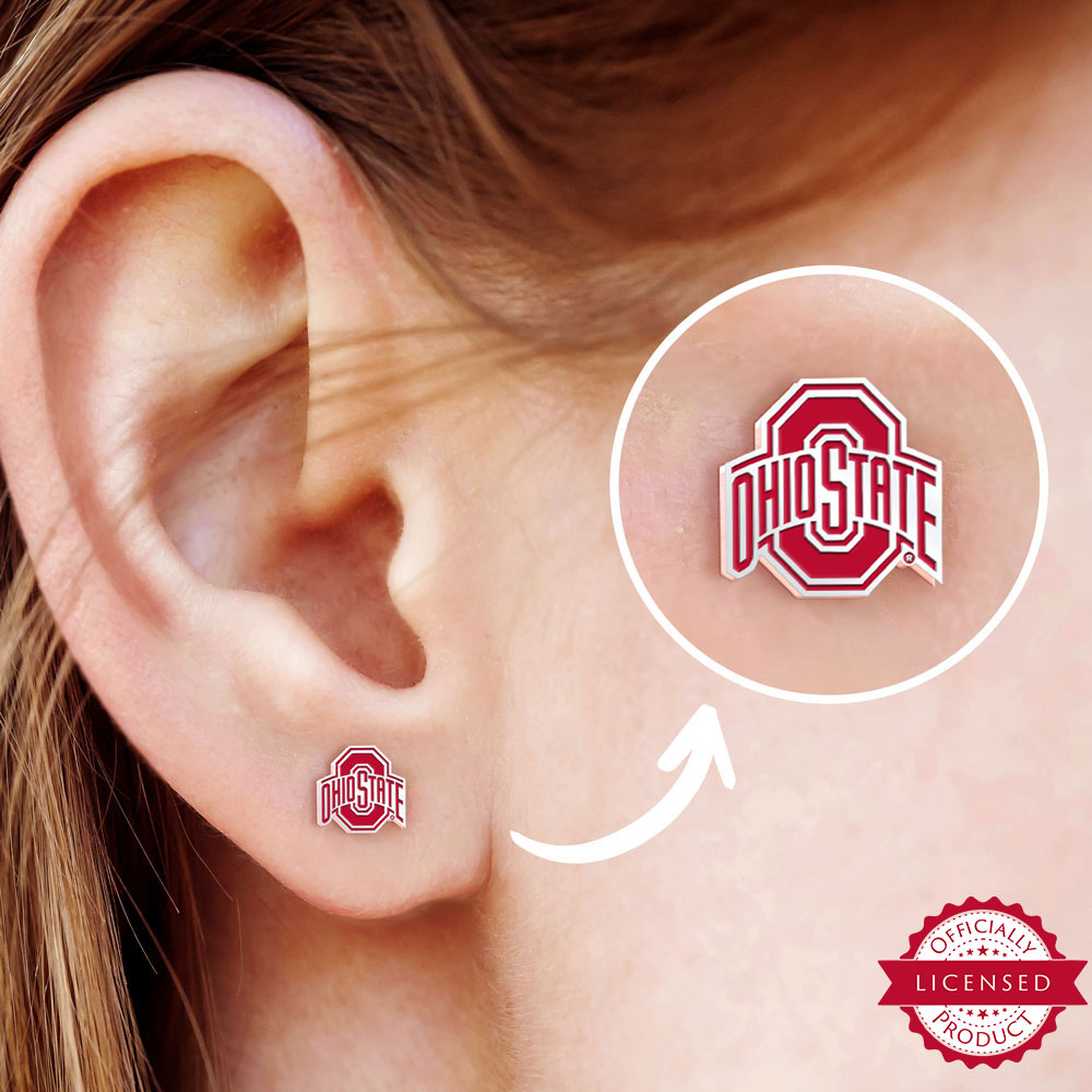 This pair of Ohio State earrings is available in Stainless Steel, Solid .925 Sterling Silver, Black Sterling Silver, Gold Plated, Rose Gold Plated or Solid 14k Gold. Each earring measures 18mm in width which is 3/4 inches wide. They are made to fit perfectly on a female or child's ear