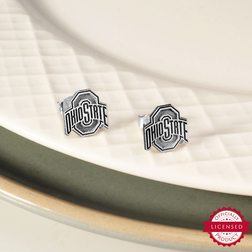 This pair of Ohio State earrings is available in Stainless Steel, Solid .925 Sterling Silver, Black Sterling