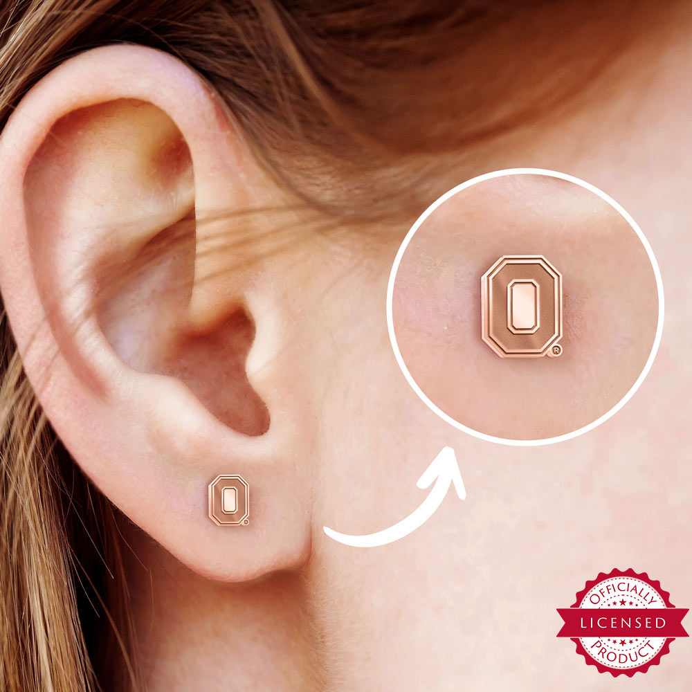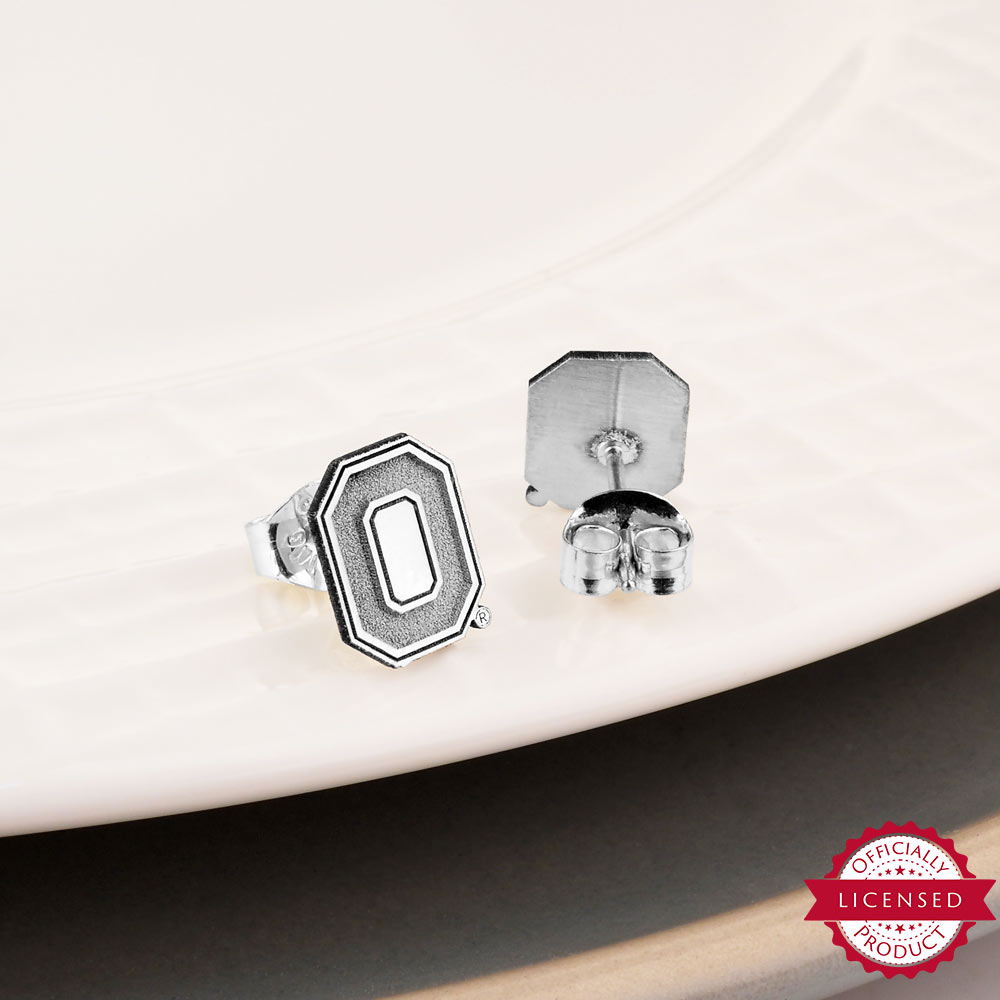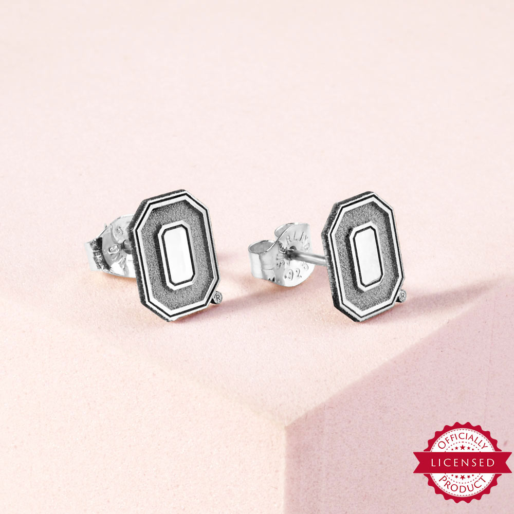 This pair of Ohio State earrings is available in Stainless Steel, Solid .925 Sterling Silver, Black Sterling