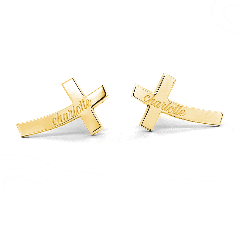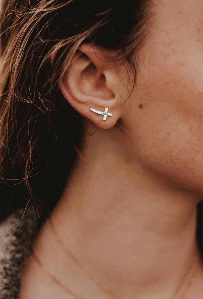 Pair Of Personalized Sideways Cross Stud Earrings