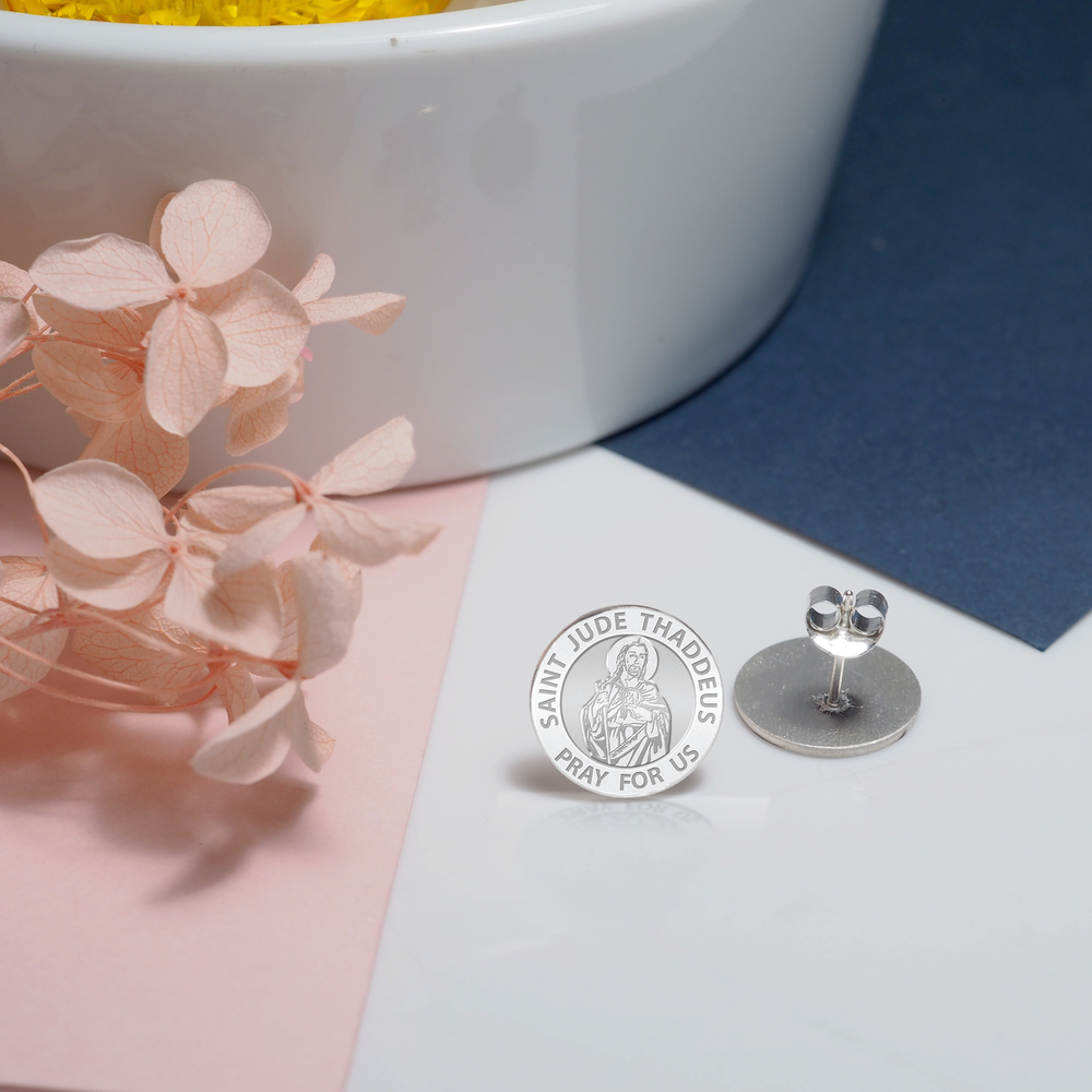 This pair of high polished saint earrings is available in Solid .925 Sterling Silver, Gold Plated, or Solid 14k Gold