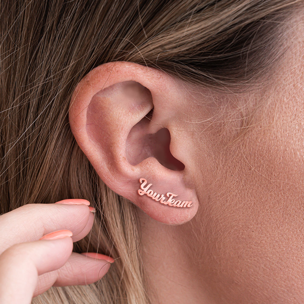This pair of high polished script earrings is available in Solid .925 Sterling Silver, Black Sterling Silver, Gold