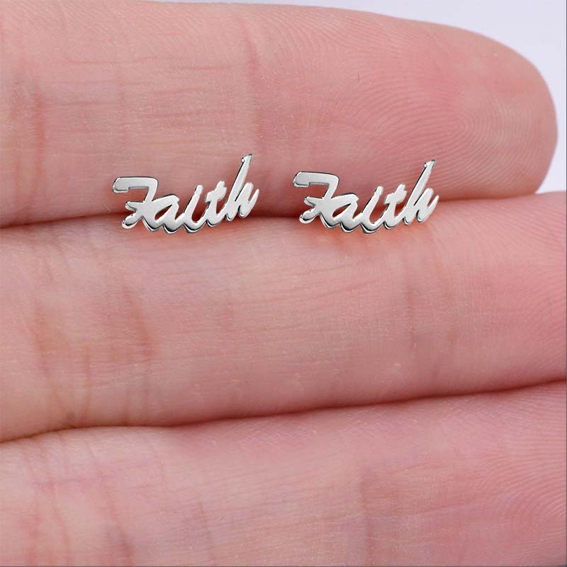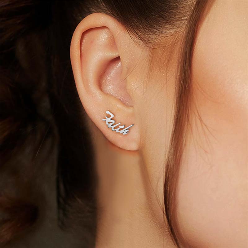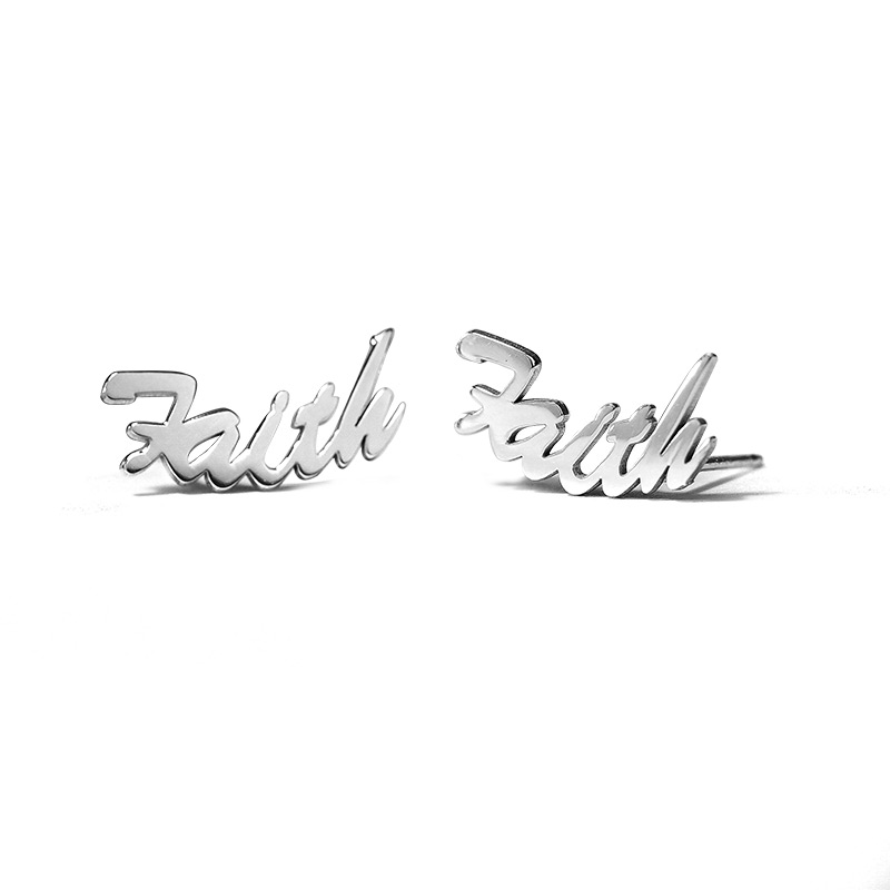 This pair of high polished script "Love" earrings is available in Solid .925 Sterling