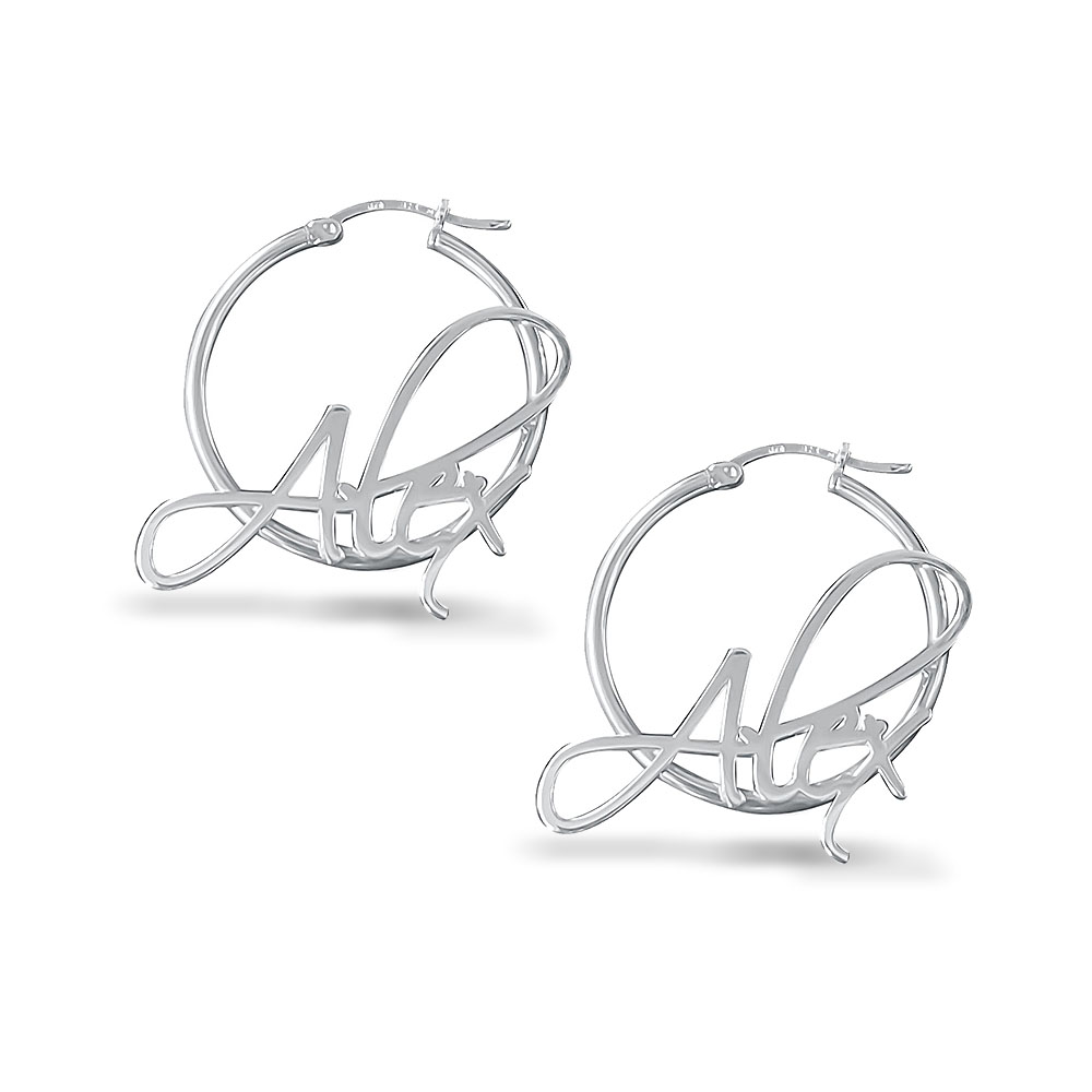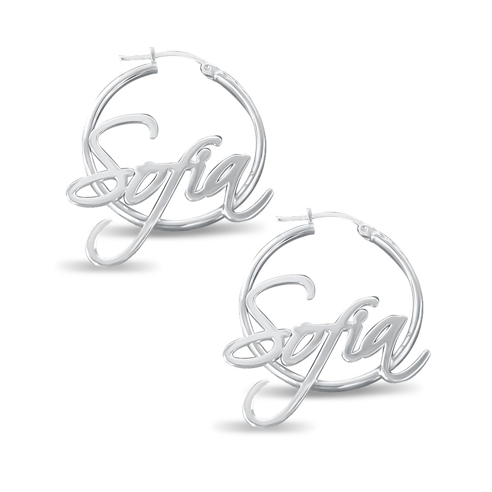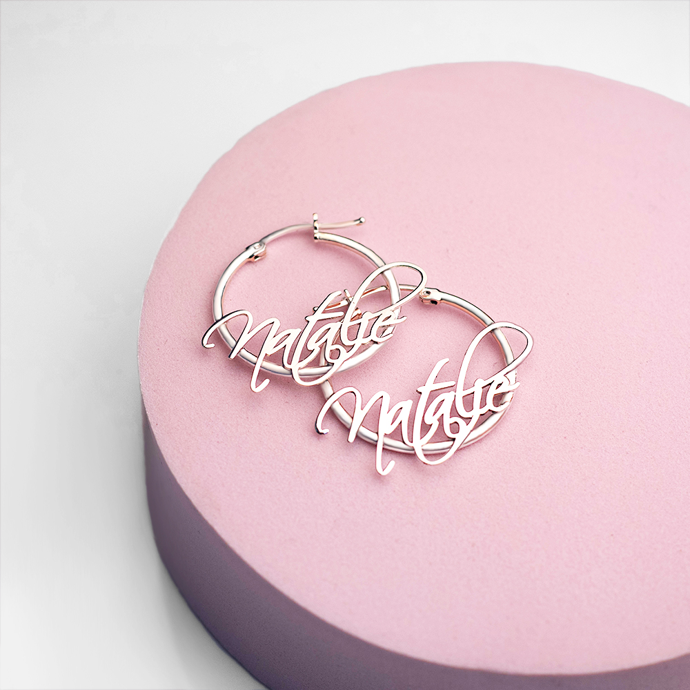 Pair Of Script Hoop Name Earrings
