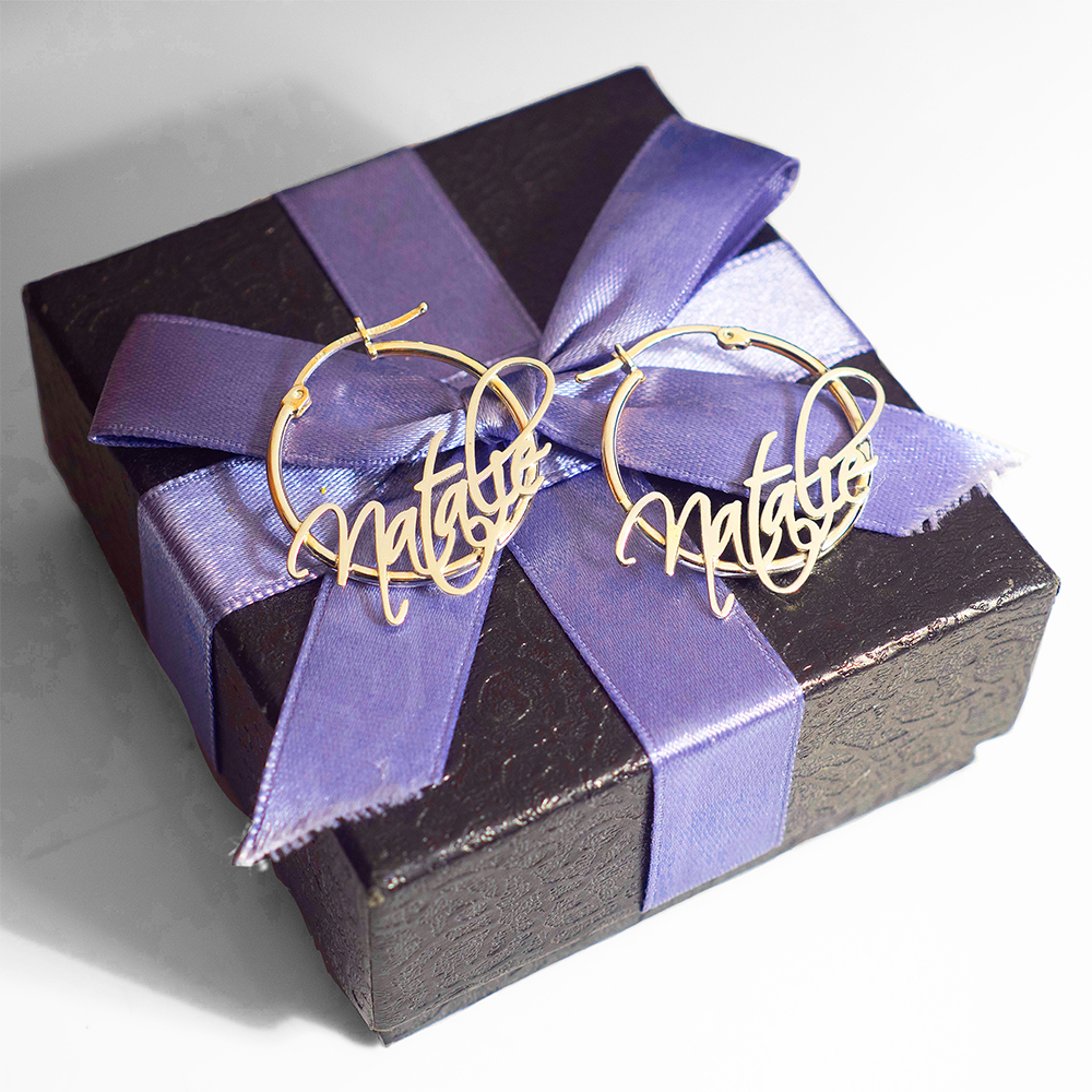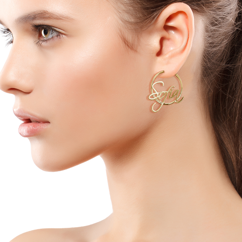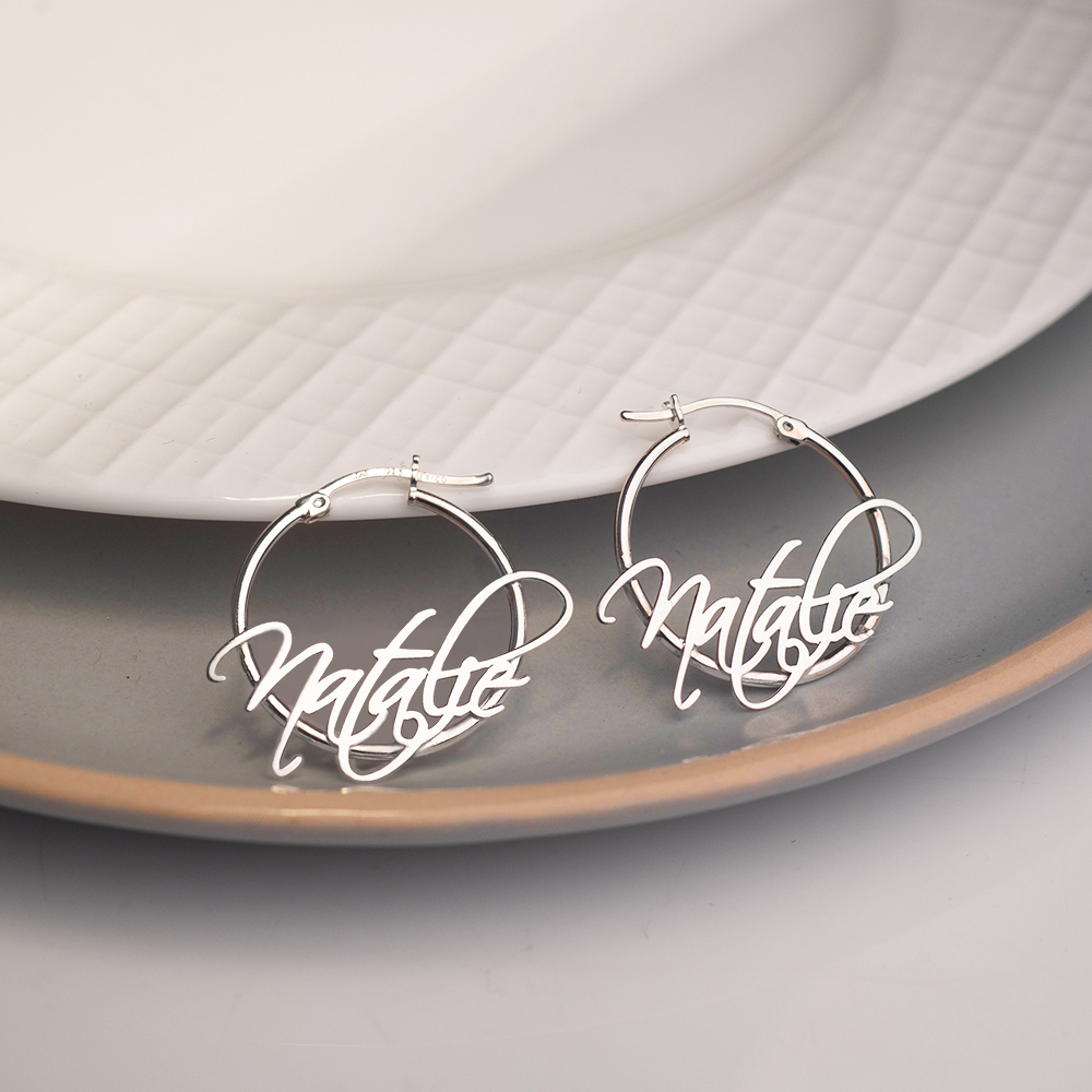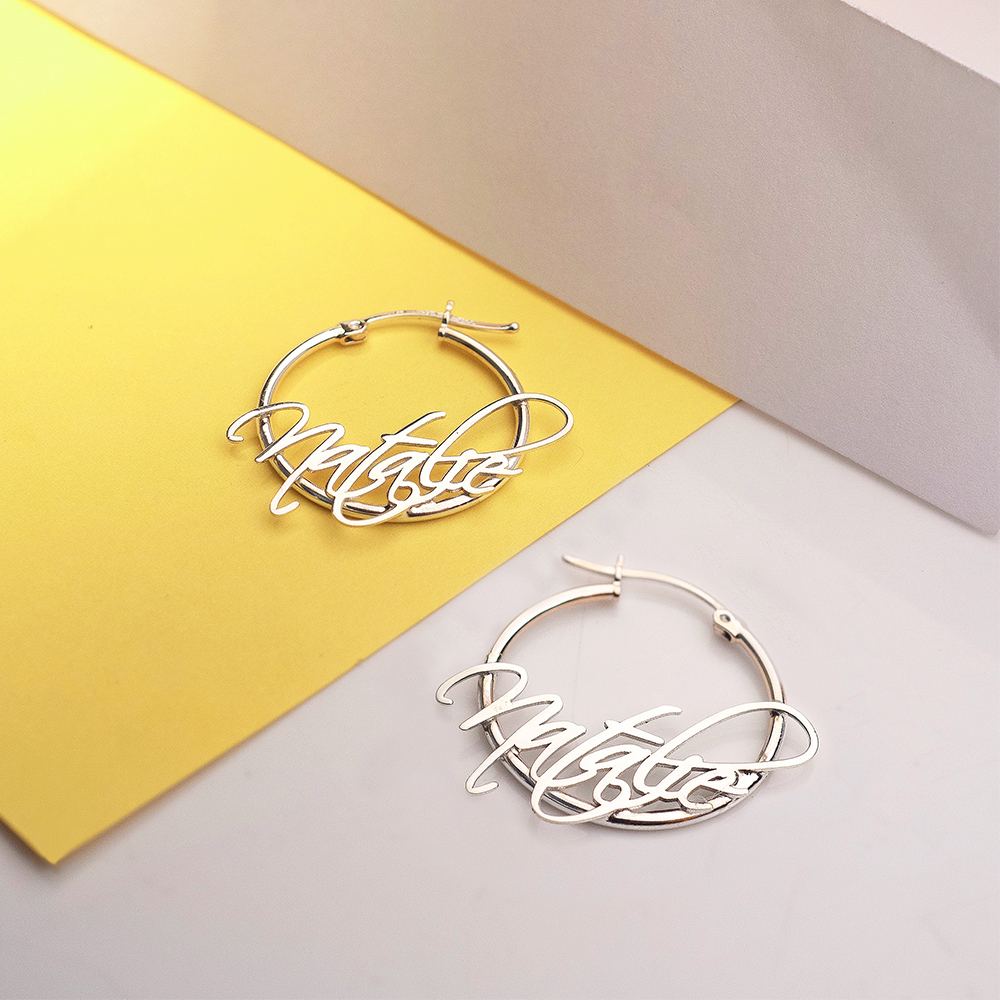 Pair Of Script Hoop Name Earrings