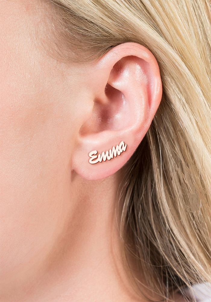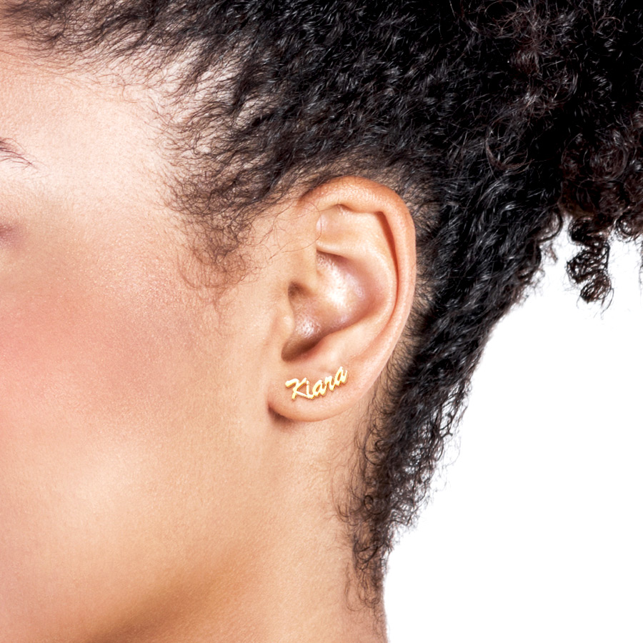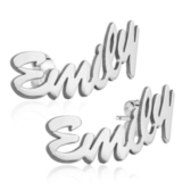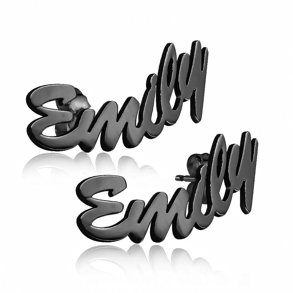 This pair of high polished script earrings is available in Solid .925 Sterling Silver, Black Sterling Silver, Gold
