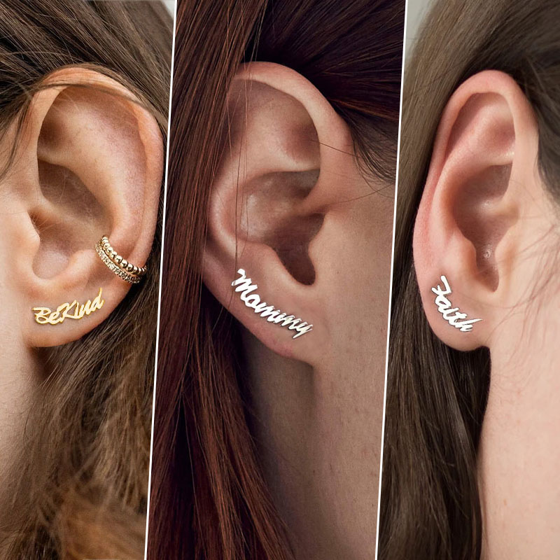 Pair Of Script Word Earrings