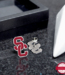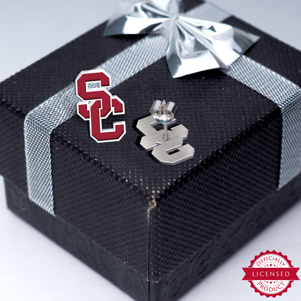This pair of University of Southern California earrings is available in Stainless Steel, Solid .925 Sterling Silver, Black Sterling Silver, Gold Plated, Rose Gold Plated or Solid 14k Gold. Each earring measures 18mm in width which is 3/4 inches wide. They are made to fit perfectly on a female or child's ear.
