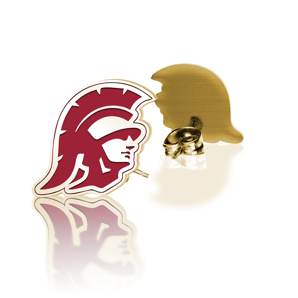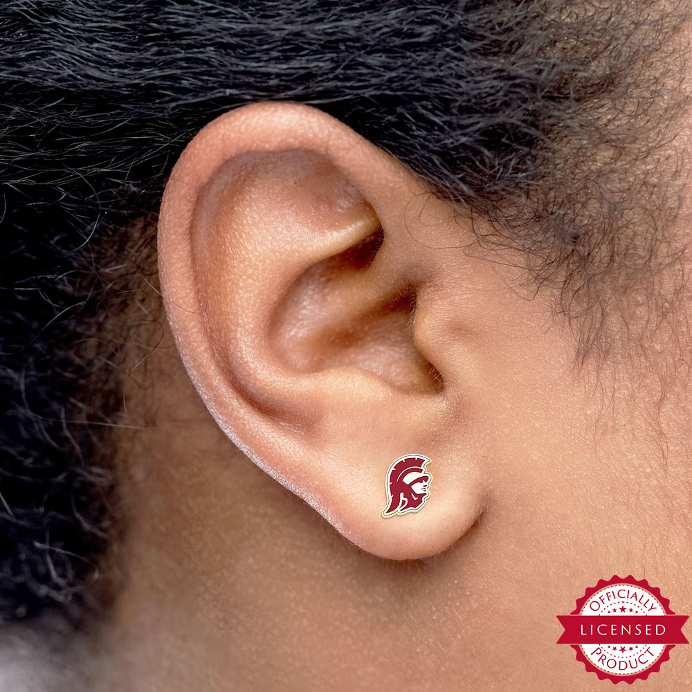 Pair Of USC Color Enamel Trojan Head Earrings