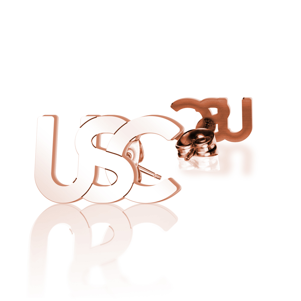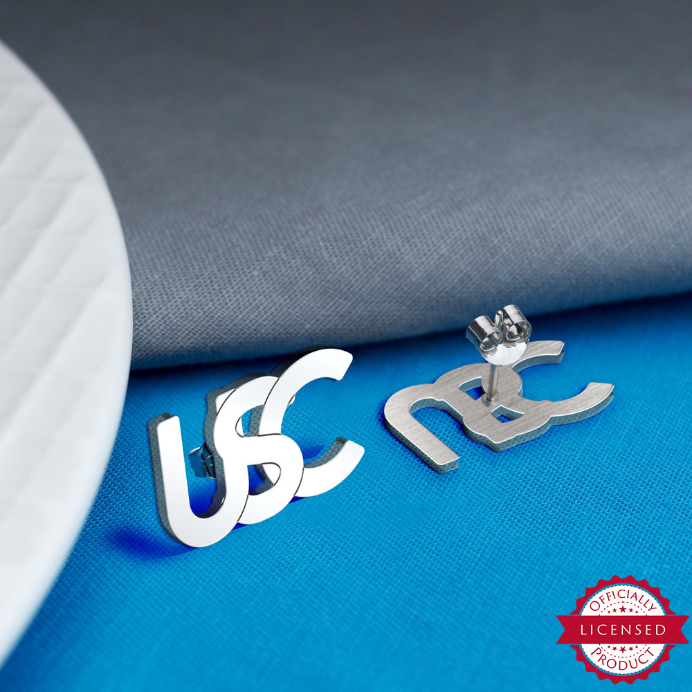 This pair of University of Southern California earrings is available in Stainless Steel, Solid .925 Sterling Silver, Black Sterling Silver, Gold Plated, Rose Gold Plated or Solid 14k Gold. Each earring measures 18mm in width which is 3/4 inches wide. They are made to fit perfectly on a female or child's ear.
