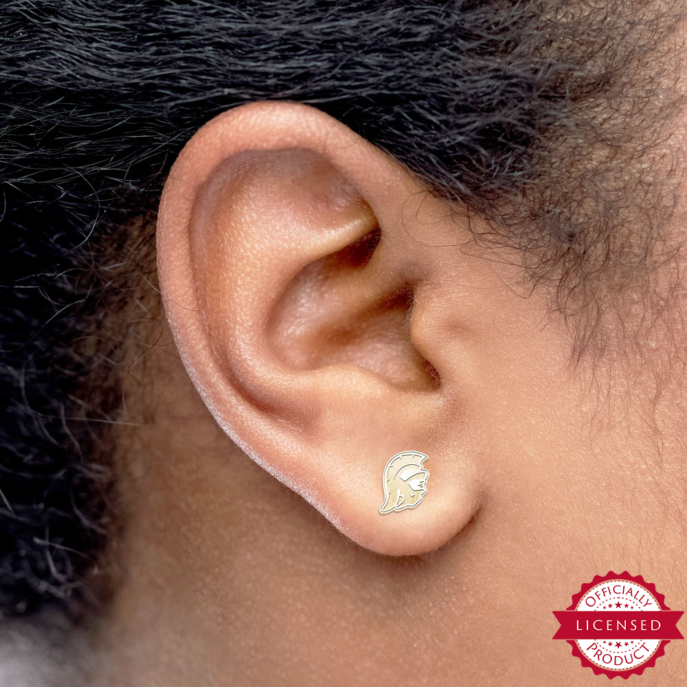 This pair of University of Southern California earrings is available in Stainless Steel, Solid .925 Sterling Silver, Black Sterling Silver, Gold Plated, Rose Gold Plated or Solid 14k Gold. Each earring measures 18mm in width which is 3/4 inches wide. They are made to fit perfectly on a female or child's ear.