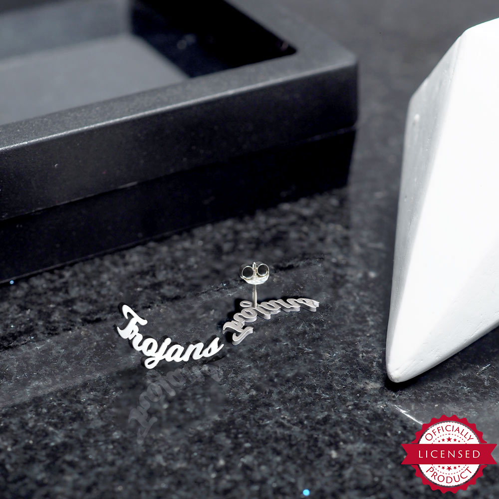 This pair of University of Southern California earrings is available in Stainless Steel, Solid .925 Sterling Silver, Black Sterling Silver, Gold Plated, Rose Gold Plated or Solid 14k Gold. Each earring measures 18mm in width which is 3/4 inches wide. They are made to fit perfectly on a female or child's ear.