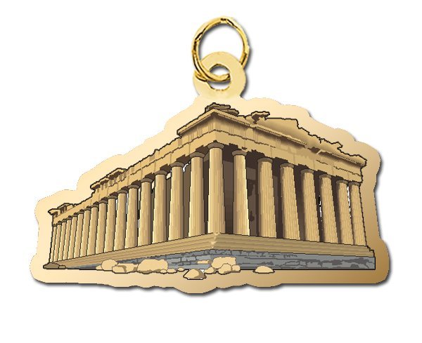 Parthenon Charm is approximately 1/2" X 1/2". If a charm is very long then the longer part will be 1/2" inch. 1/2" is around the size of a Dime. Charm includes a split ring so you can easily attach a charm bracelet.