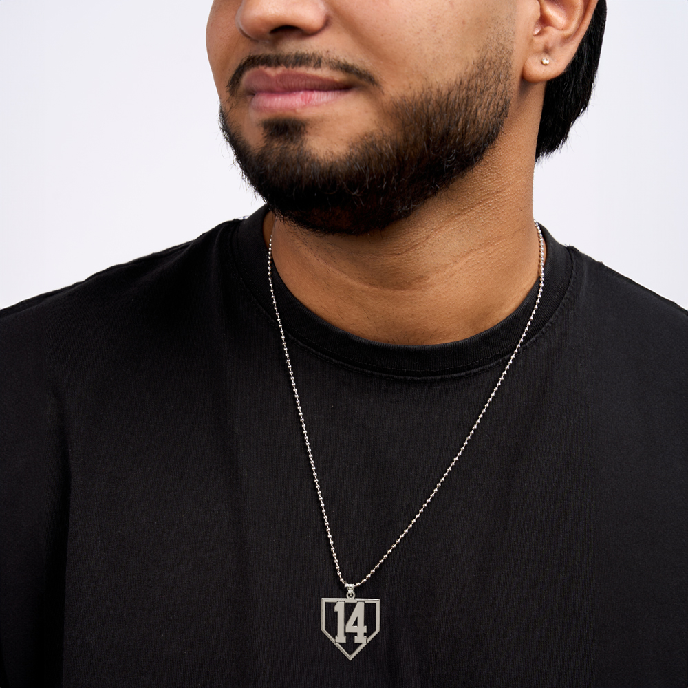 This distinctive Baseball Homeplate Cut Out with Number Pendant is the perfect way to show off your team number! The