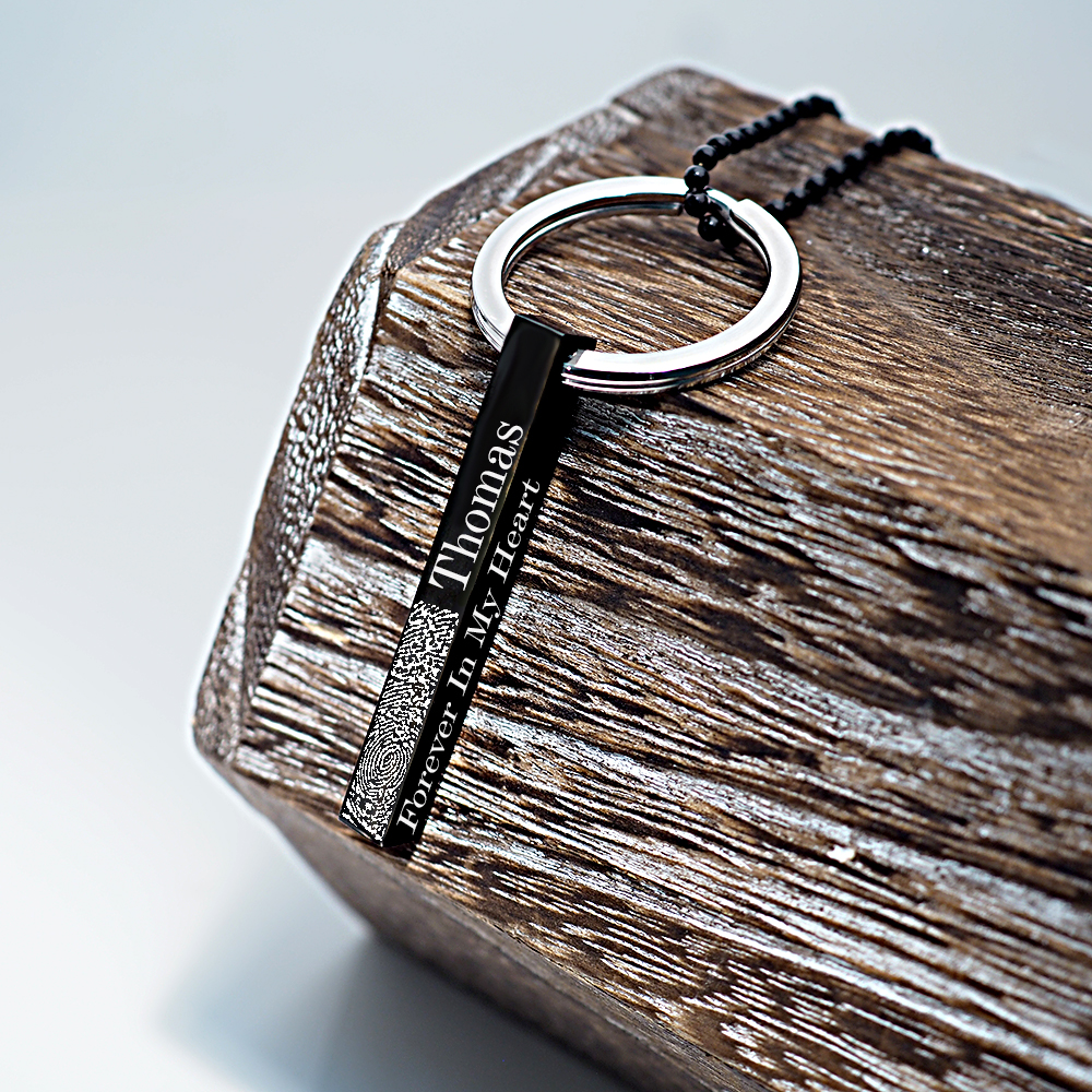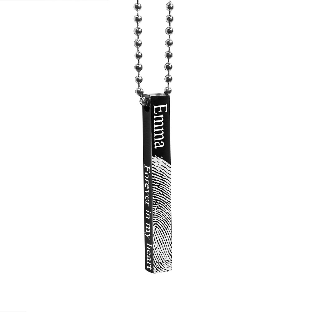 Personalized Black Stainless Steel Fingerprint Vertical 3D Bar Necklace
