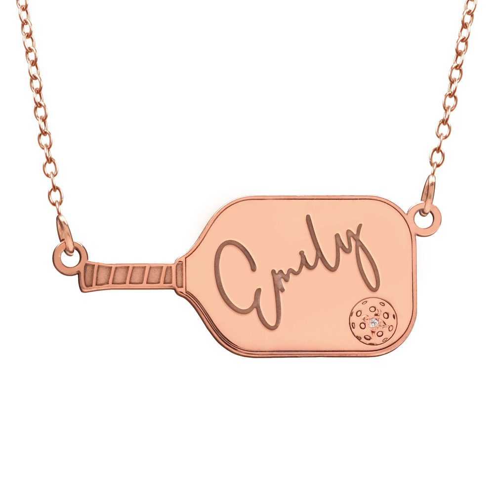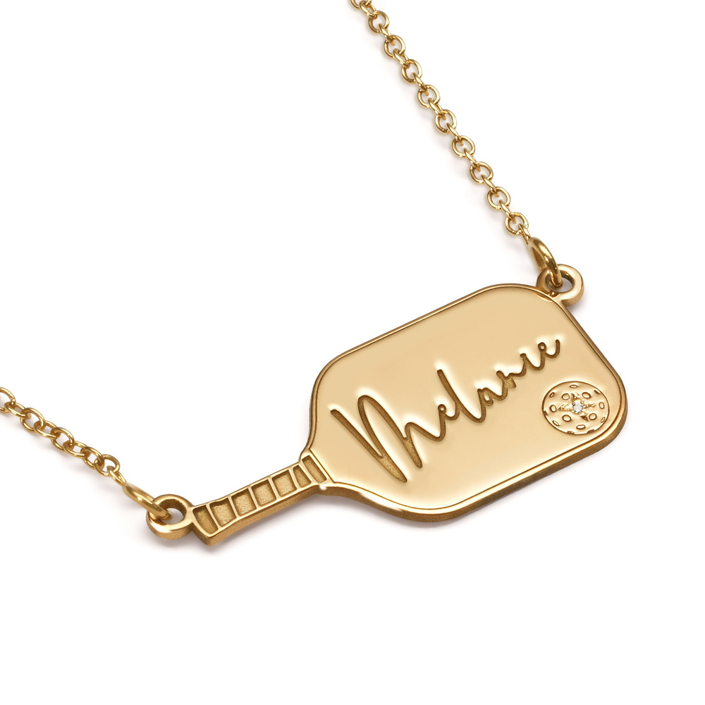 crafted piece features a detailed pickleball charm with your personalized name engraving, creating a one-of-a-kind accessory that showcases both your style and