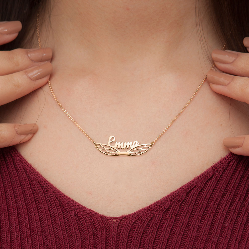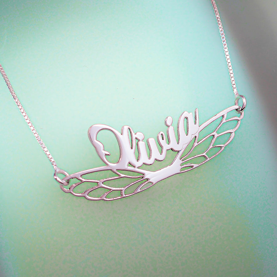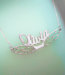 This horizontal high polished script nameplate is available in Solid .925 Sterling Silver, Solid 14k Yellow
