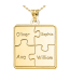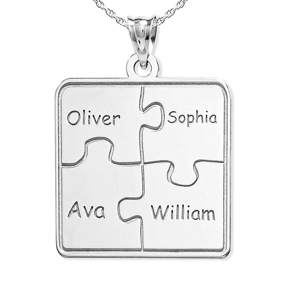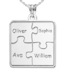 This Personalized Family Four Piece Jigsaw Puzzle Pendant includes an 18 Inch Chain. The perfect gift for Mom, Grandma, Sister, Aunt even Best Friend. This Pendant symbolizes how a family always comes together like a puzzle.