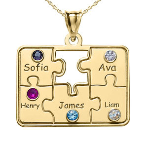 This Personalized Family Five Piece Jigsaw Puzzle Pendant includes an 18 Inch Chain. The perfect gift for Mom, Grandma, Sister, Aunt even Best Friend. This Pendant symbolizes how a family always comes together like a puzzle.
