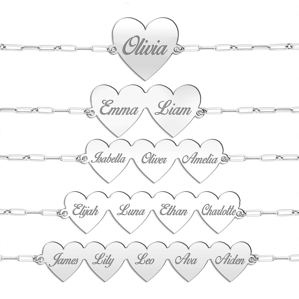 name hearts on a delicate paperclip chain, this bracelet is a stunning keepsake that will remind her of all the love in