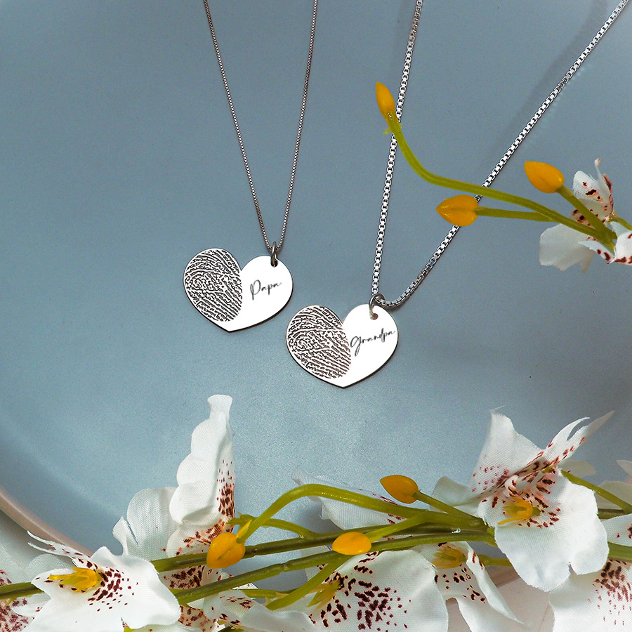 Personalized Fingerprint Dangle Heart Pendant w/ Name