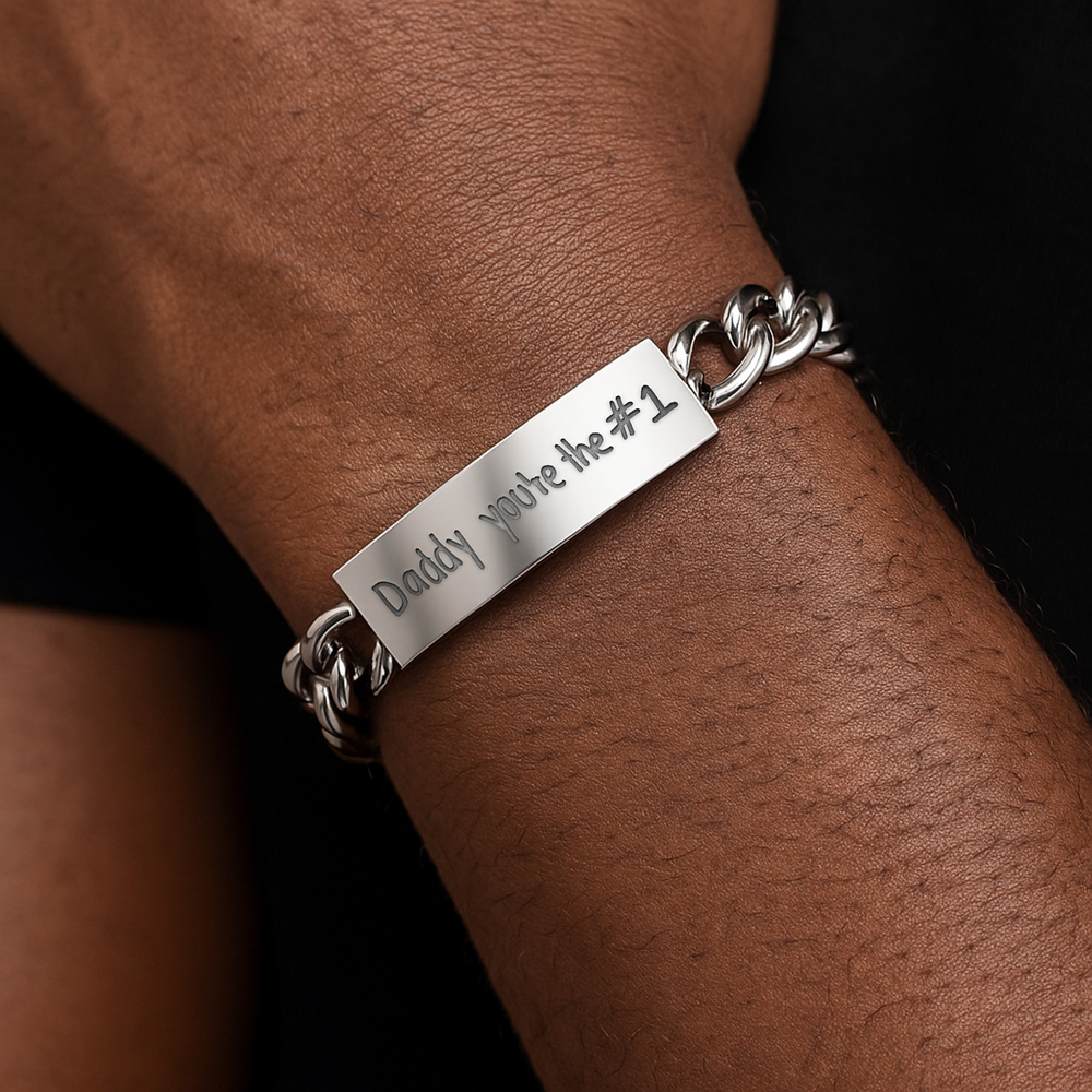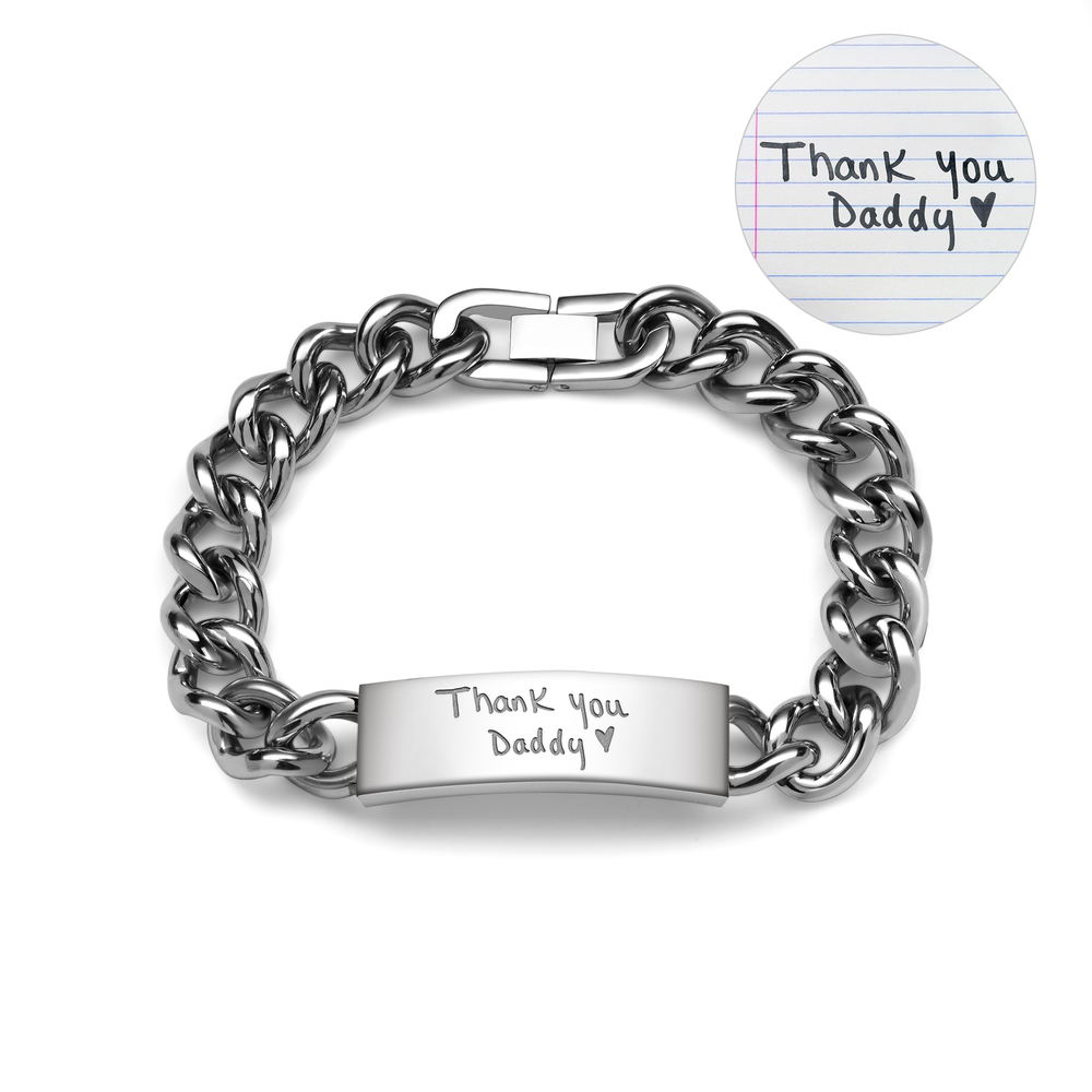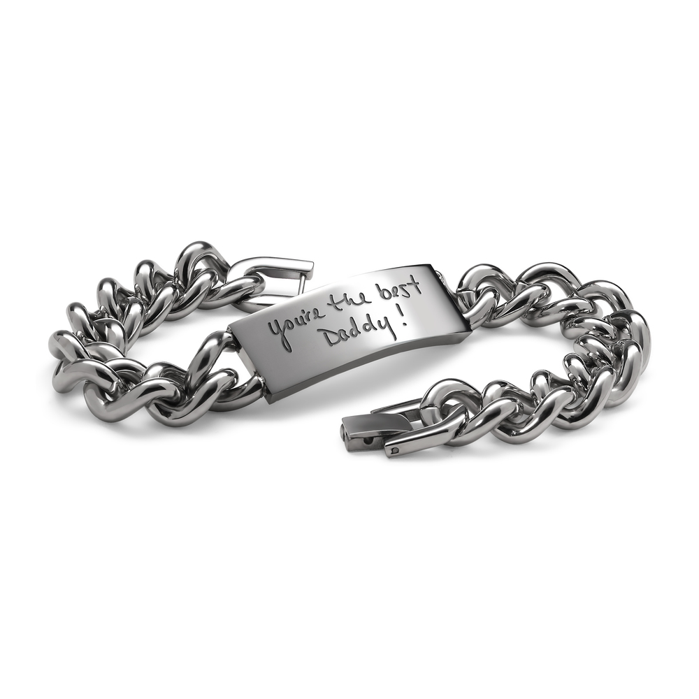 The Personalized Handwriting Men's ID Bracelet is more than a gift; this bracelet allows you to laser engrave a cherished handwritten message, signature, or note, preserving a personal touch that lasts a lifetime.