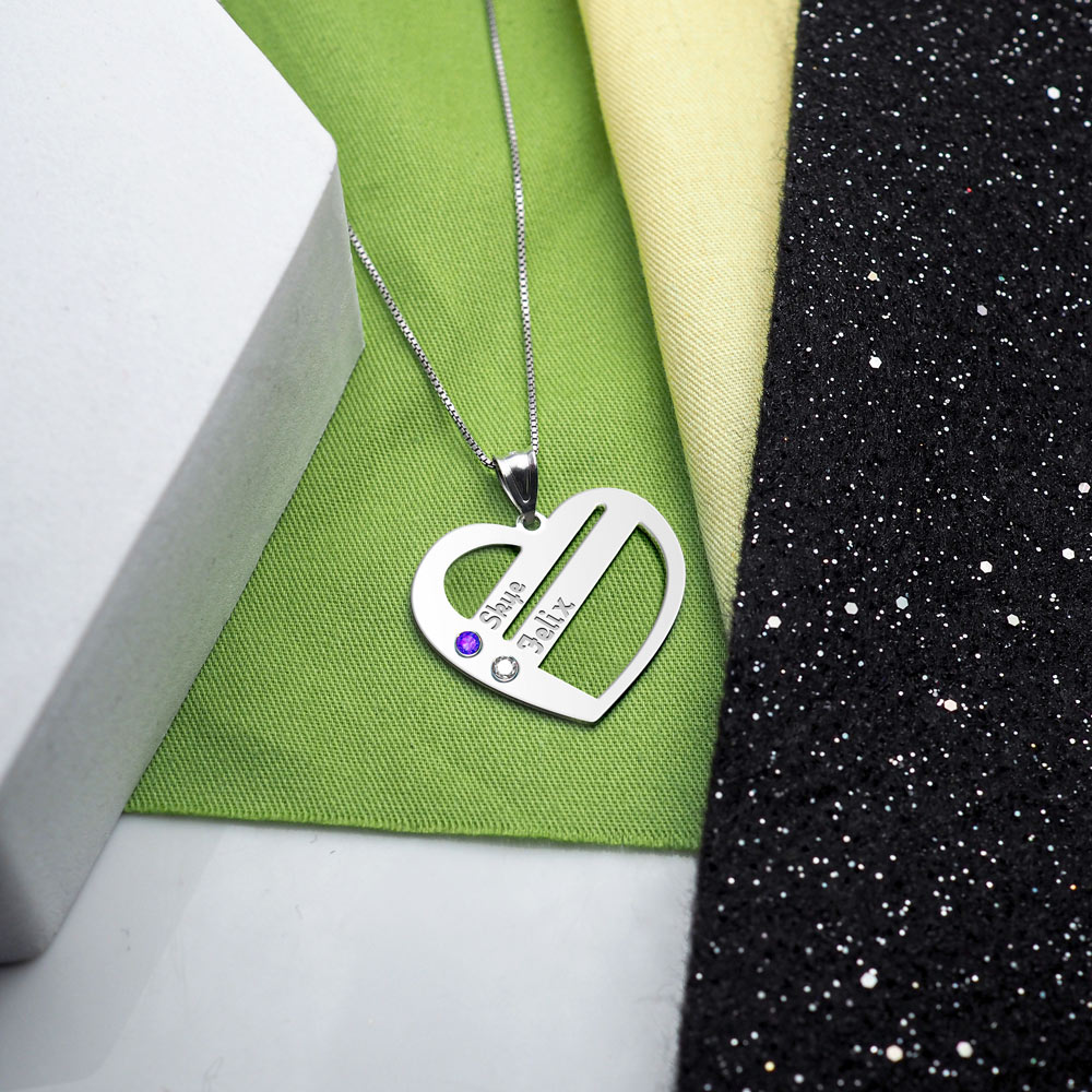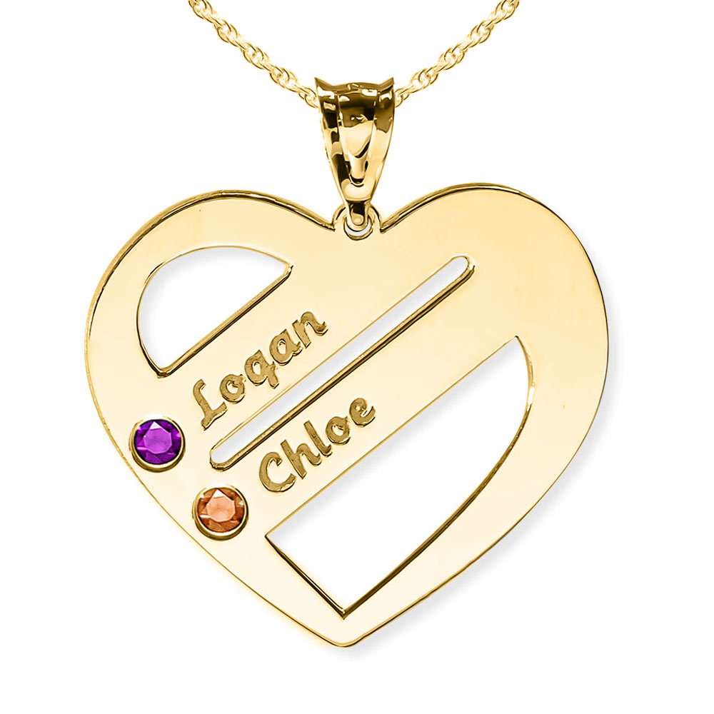 This Personalized Heart Family Pendant With Two Birthstones & Two Names includes an 18 Inch Chain. The perfect gift for