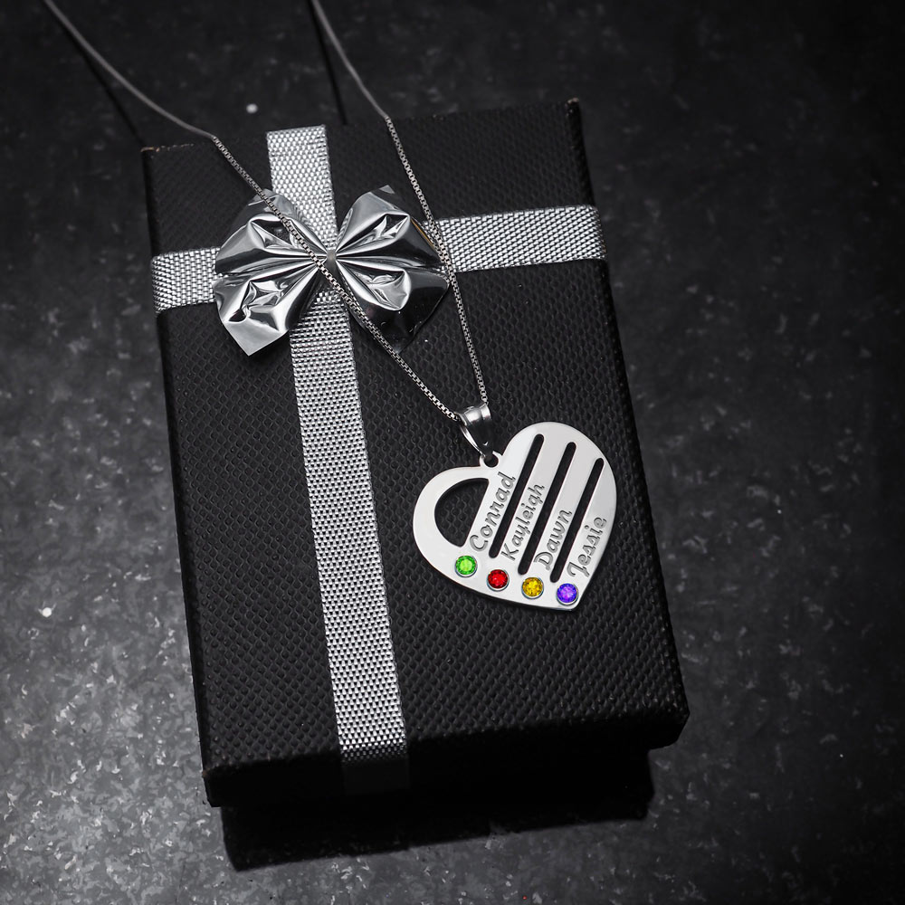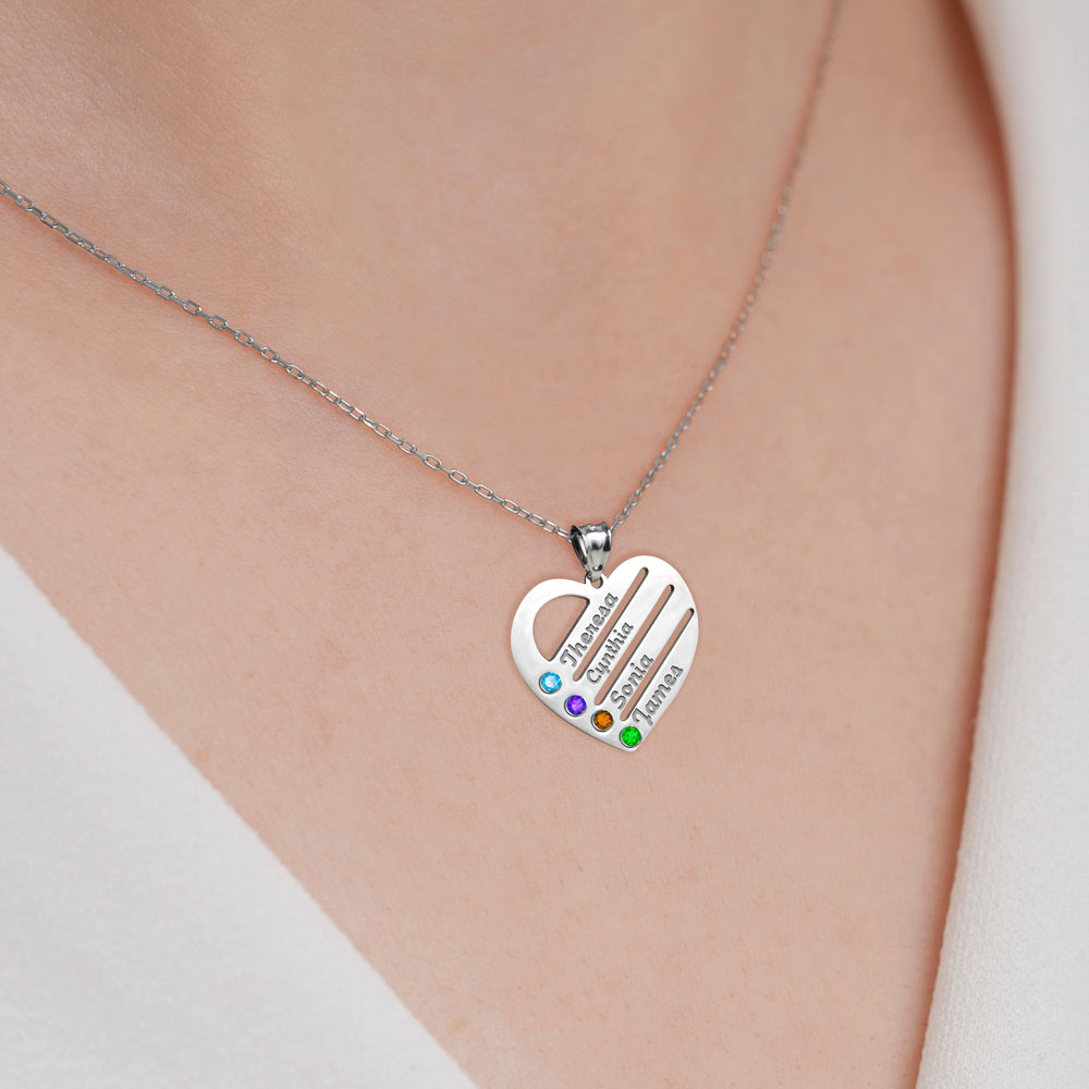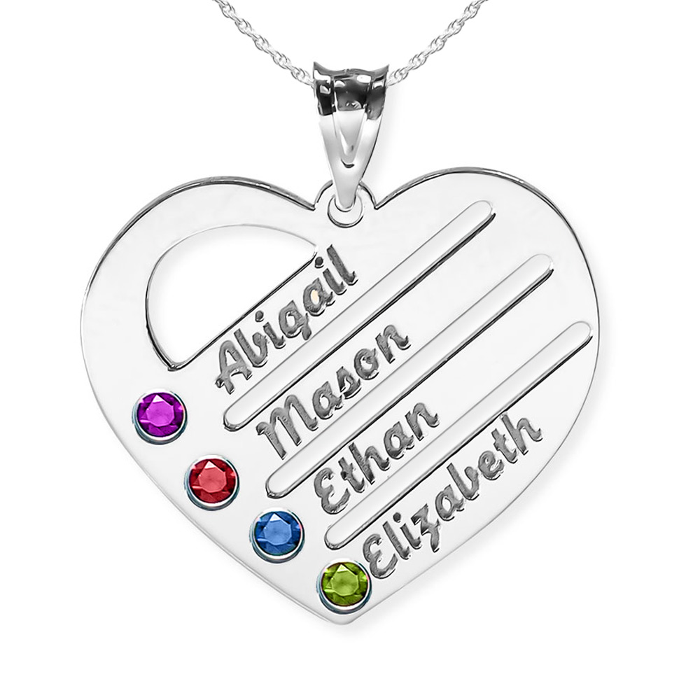 This Personalized Heart Family Pendant With Four Birthstones & Four Names includes an 18 Inch Chain. The perfect gift for