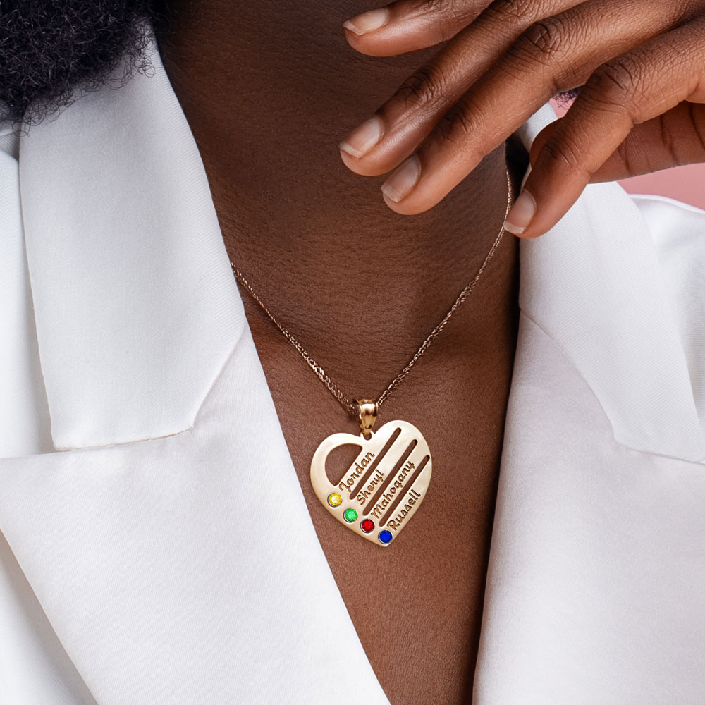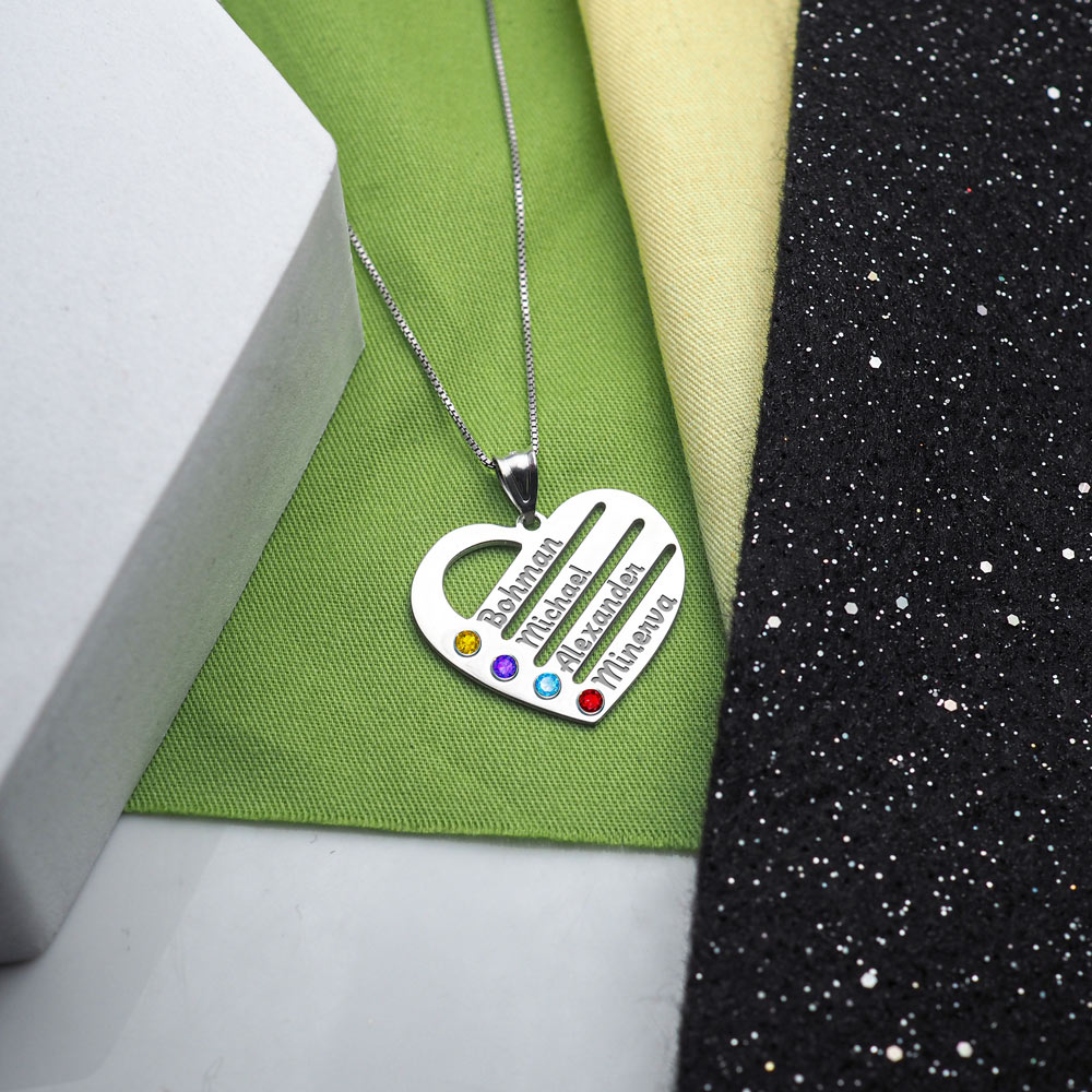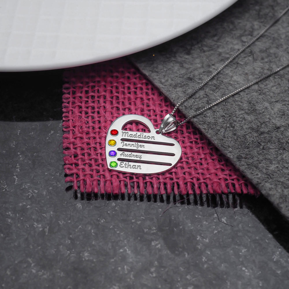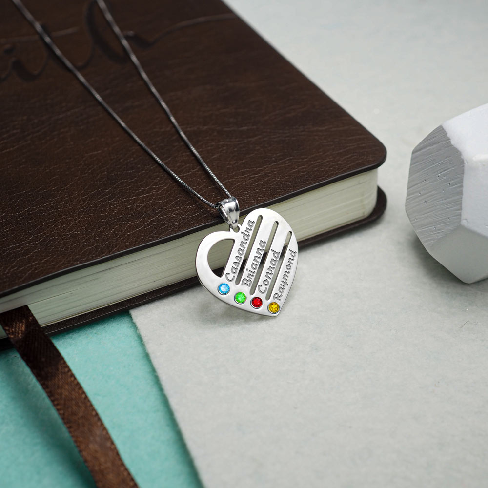 This Personalized Heart Family Pendant With Four Birthstones & Four Names includes an 18 Inch Chain. The perfect gift for